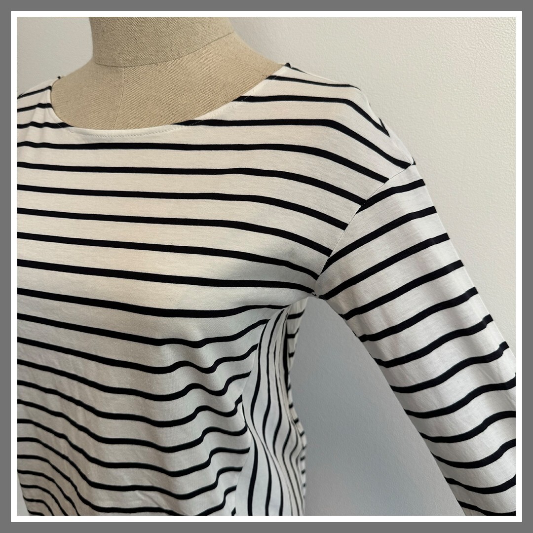 UNTITLED アンタイトル 長袖カットソー ラウンドネック ボーダー 切り替え 大人カジュアル スタイルアップ 上品 おしゃれ 日本製