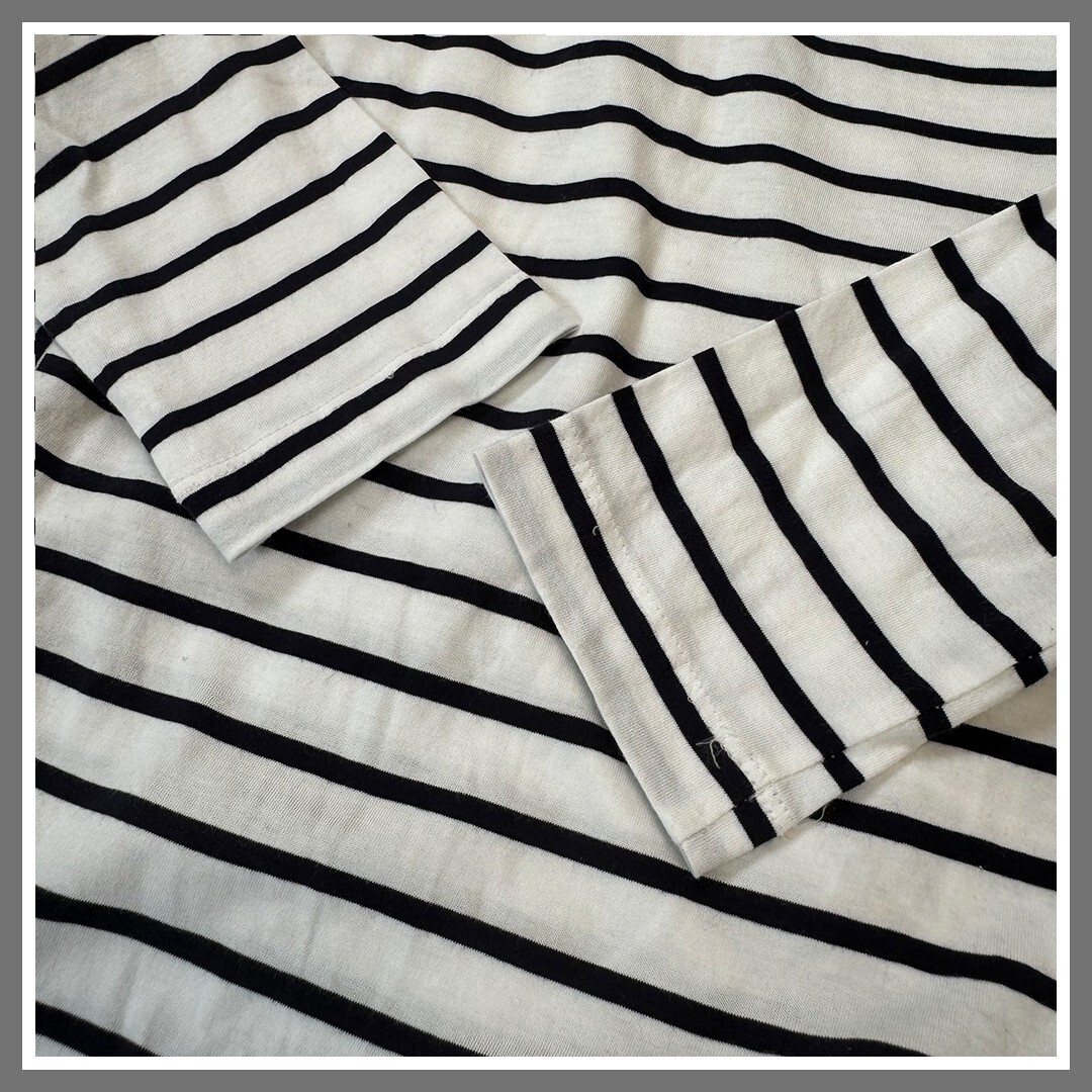 落ち着いた切り替えのボーダーデザインがシチュエーションを選ばず幅広いコーディネートを楽しんでいただけます。