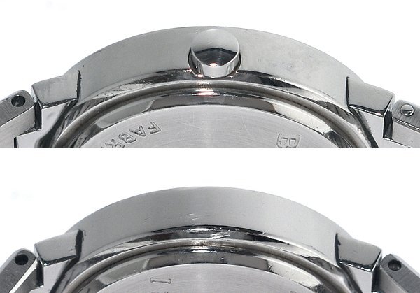 目立つ傷などはできる限り、画像、説明文に記載致しますが、見落としがある可能性もございます。 画像に載っている以外の傷がないことを保証するものではございません。 目視では認識できても、画像では伝わらない傷がある場合もあります。 現物を確認できない画像を通してのお取引であること、2次流通品、中古品という点をご理解頂きます様お願い致します。 ディスプレイによって実際の商品と画像の色の写り方が異なる場合がございますのでご注意ください。 日差はタイムグラファーで計測しておりますが、 機械式時計の場合、姿勢差などの影響により日差が大きくなることもあります。 記載している数値は参考値としてお考え下さい。 日差が大きいからという理由での返品や無償修理の対応は致しかねます。 機構によりタイムグラファーで計測できない場合は記載しておりません。 過去のOH(オーバーホール)歴は、付属品に記載がなければ分かりかねます。 電波時計の場合はフル充電されていない状態での発送となります。 輸送中の充電切れ等に関しましては当社では保証致しかねます。 商品受取後、充電切れ、不足の場合はまず充電をしてからご使用ください。 設定、ご使用方法等は各メーカーサイトをご覧いただくか、専用窓口等にお問い合わせくださいませ。 余りコマは記載しておりますが、ピンの状態、部品等は確認しておりません。 万が一、装着する際の部品が不足している場合は別途ご用意していただく必要があります。予めご了承くださいませ。 装着されているブレスレットのコマのピンの状態など、 分解しないと確認できない箇所については確認しておりません。 当社では防水検査は行っておりません。 記載する防水性については、「商品の機能、性能としての防水性」とお考え頂きます様、お願い致します。 各メーカーサイトでの保証、メンテナンス等の無償、有償サービスの個人情報等によるご登録については未確認です。 保証期間内にメーカー保証を受けられる際に有償、無償かは依頼される内容によって異なる為、各メーカーに直接お問い合わせくださいませ。 メーカーの判断となる為、当社では分かりかねます。ご了承くださいませ。 また保証書の譲渡手続き、名義変更などは行っておりません。 万が一、説明文と著しく状態が異なった場合は、修理等をされる前に当社にご連絡をお願い致します。 ご自身で修理、または店舗で修理等、手を加えられてからでは当社では対応致しかねますのでご了承ください。 当社保証期間を過ぎてからの動作などに問題が発生した場合については有料になってしまいますが、修理可能であれば弊社の提携時計店で修理させて頂きます。 お困りの際はお気軽にご相談くださいませ。 外観上でのランク付け、状態記載をさせて頂いております。 弊社の商品は全て中古現状での出品とさせて頂きます。 気になる点がありましたら、ご入札前にお気軽にお問い合わせ下さいませ。 上記記載をご理解、ご了承の上、ご入札をお願い致します。 |