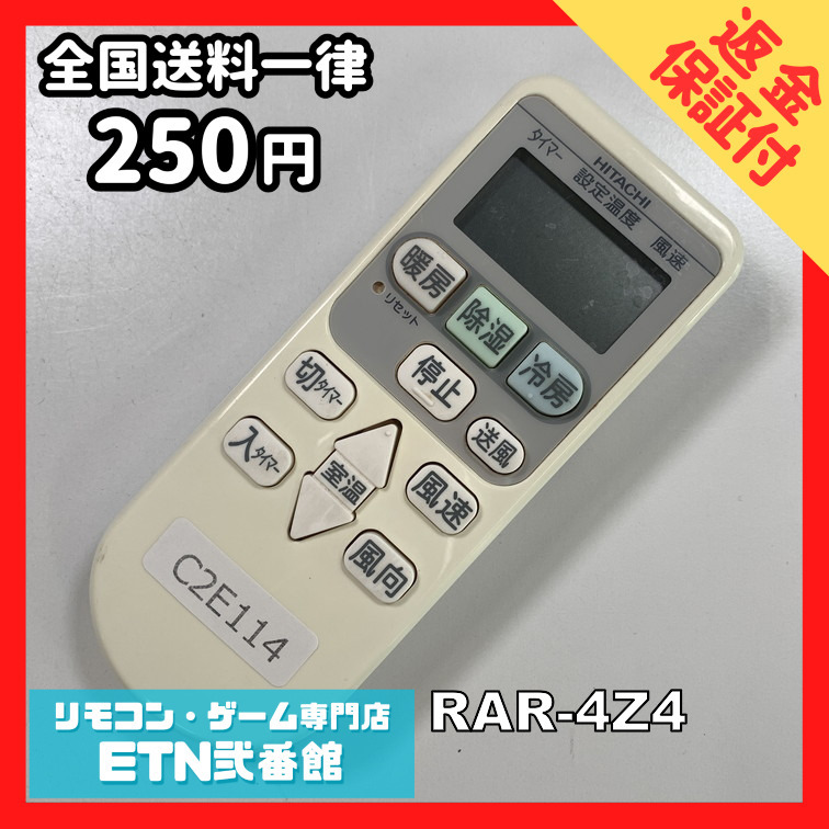 C2E114 【送料250円】エアコン リモコン / 日立 ヒタチ HITACHI RAR-4Z4 冷房 暖房 動作確認済み★即発送★