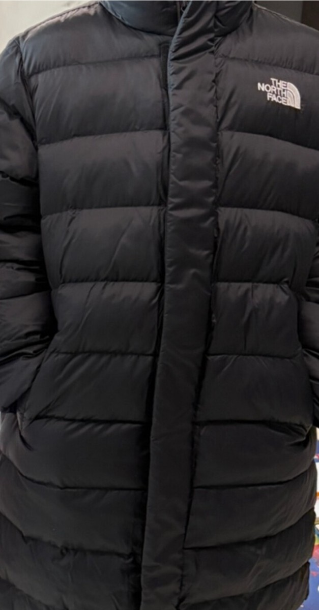 フード付き型でロング丈のダウンコートです。