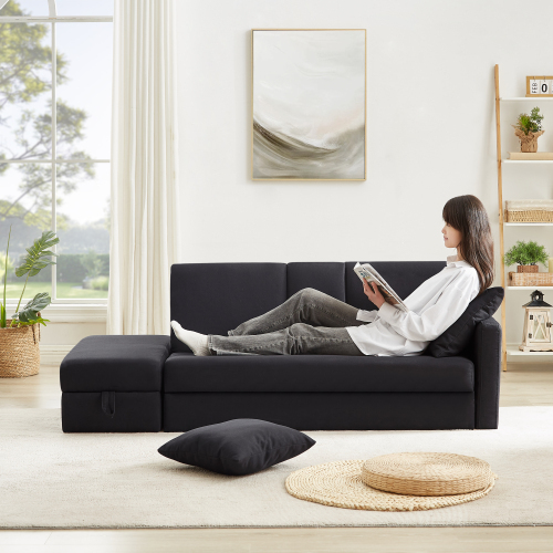 ソファ ソファーベッド カウチソファ 3人掛け オットマン付き 多機能ソファ 左右側とも取り付けるアームレストレイアウト自由