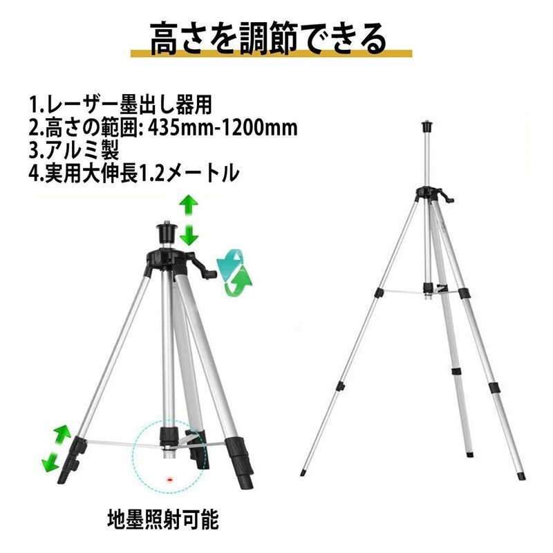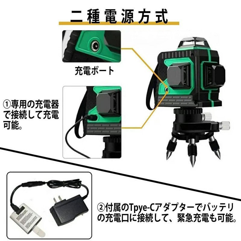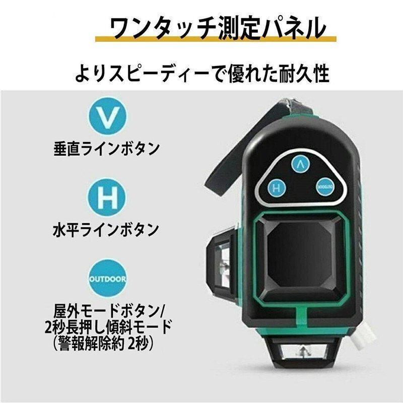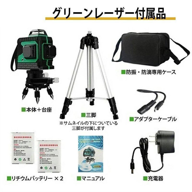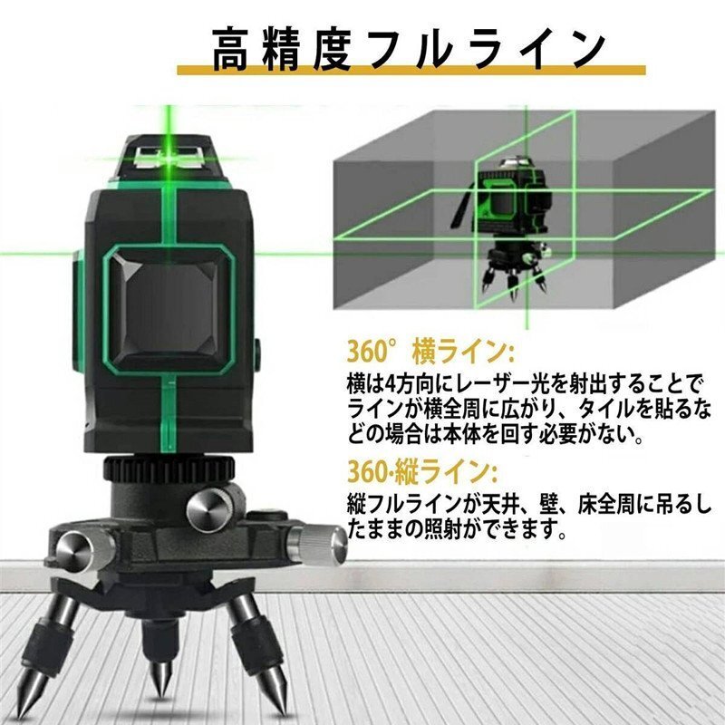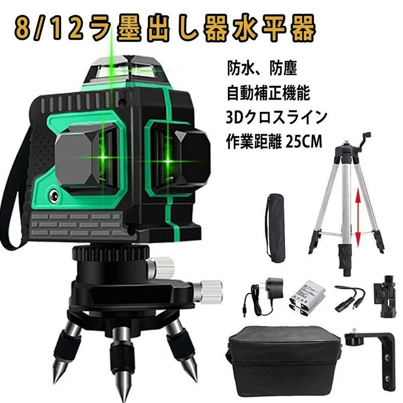 レーザー墨出し器 12ライン レーザーレベル 水平器 バッテリー2個付き・三脚セット グリーンレーザー 傾斜 360度 3D 3x360° レーザー