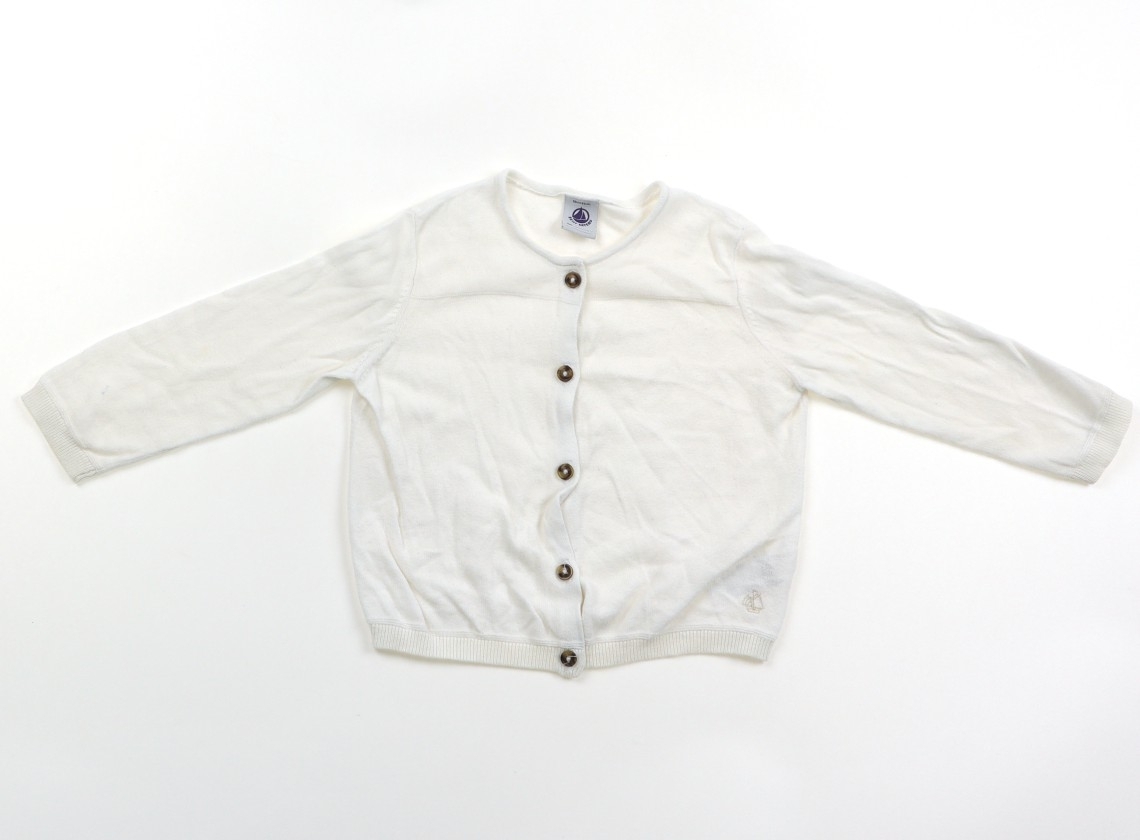 実際のサイズ表記は18m/81cm。薄手のコットンニットカーディガン。ヨレと毛羽立ちありますがまだお使いいただけそうです。