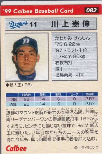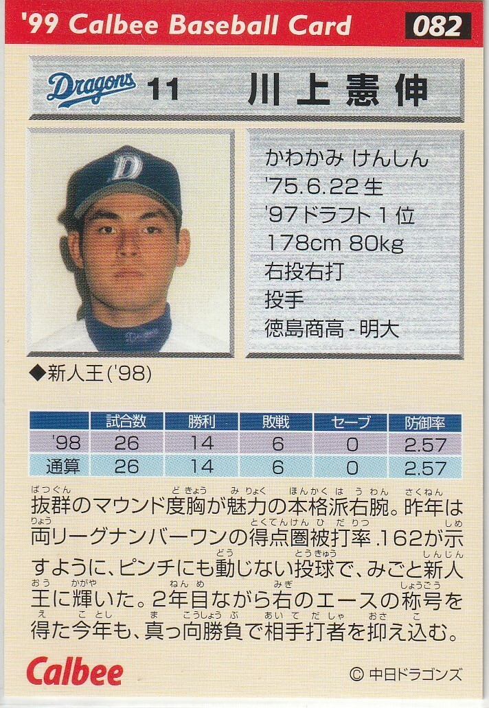 ●1999カルビー【川上 憲伸】 BASEBALL CARD No.082:中日
