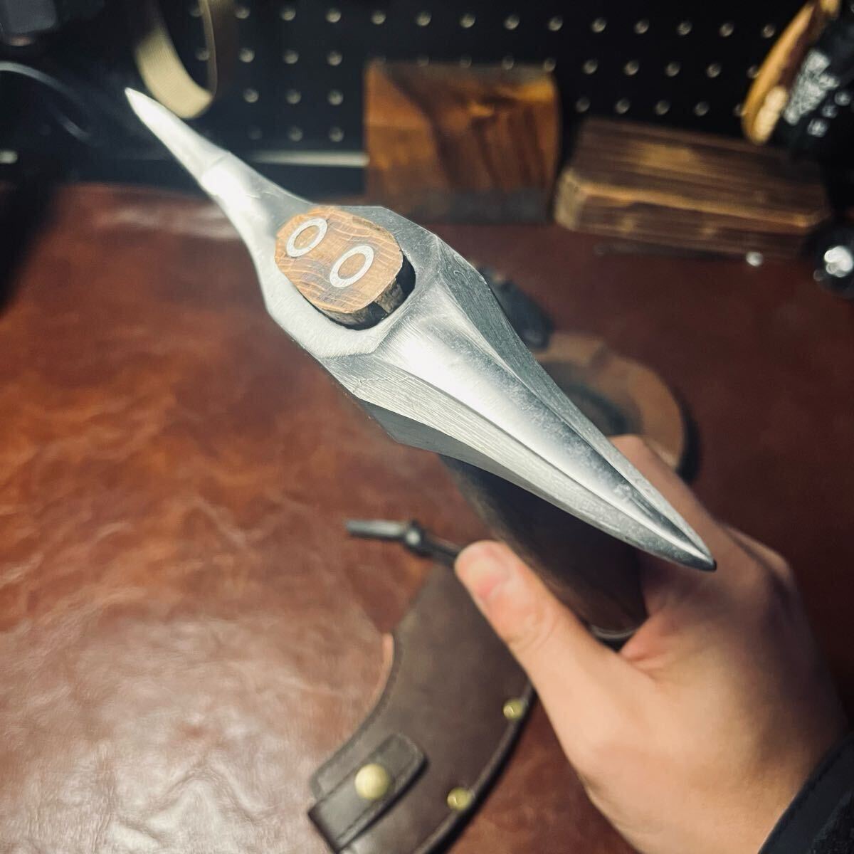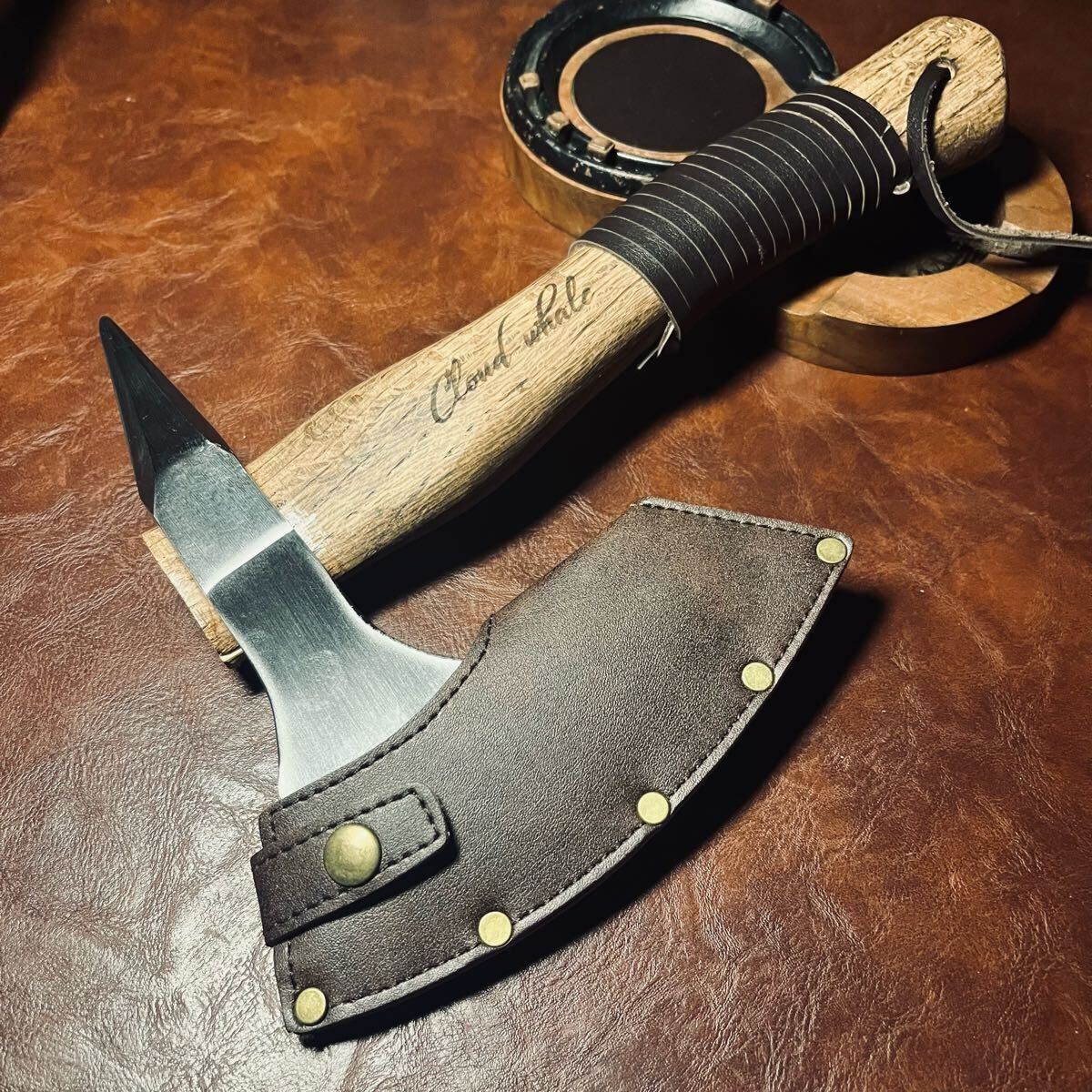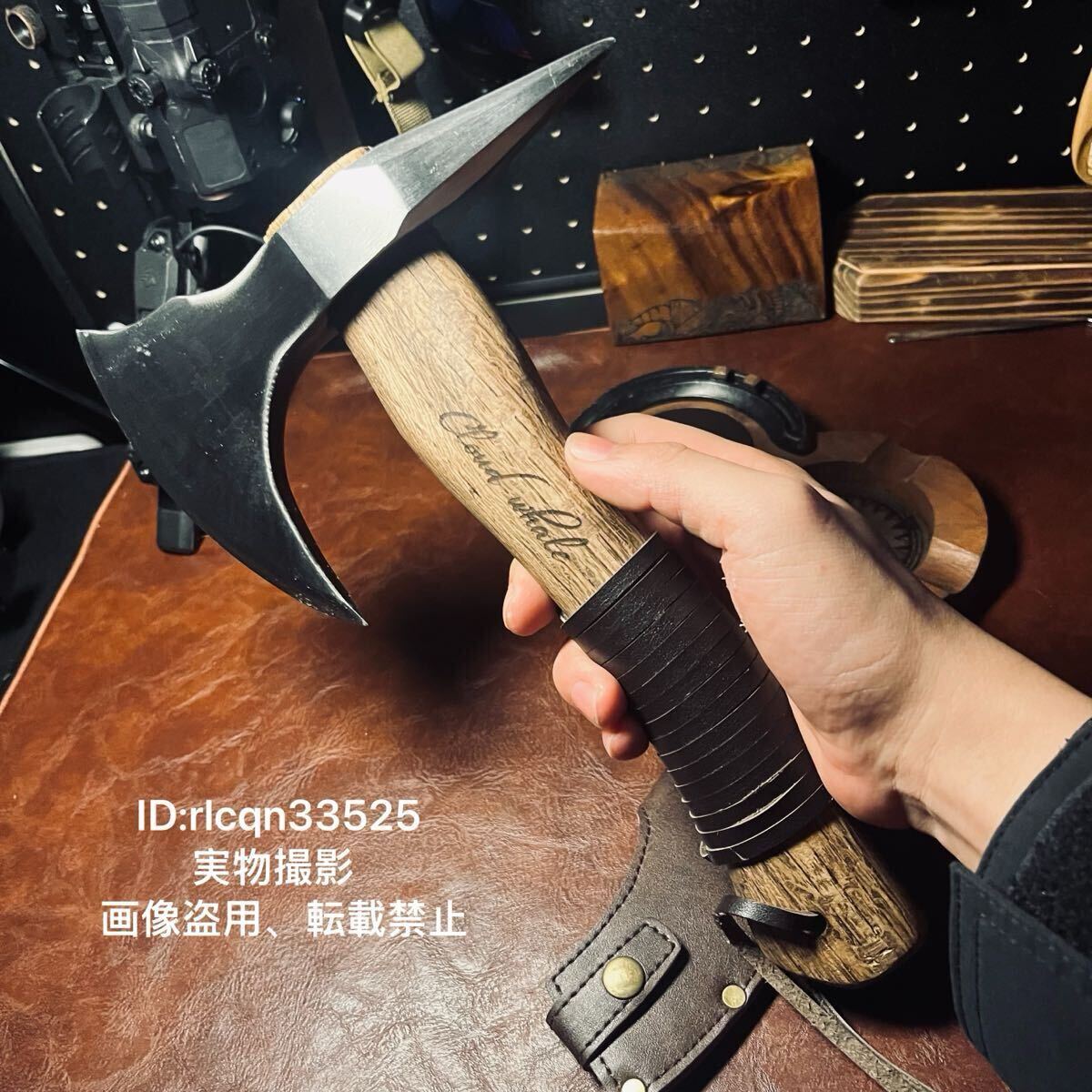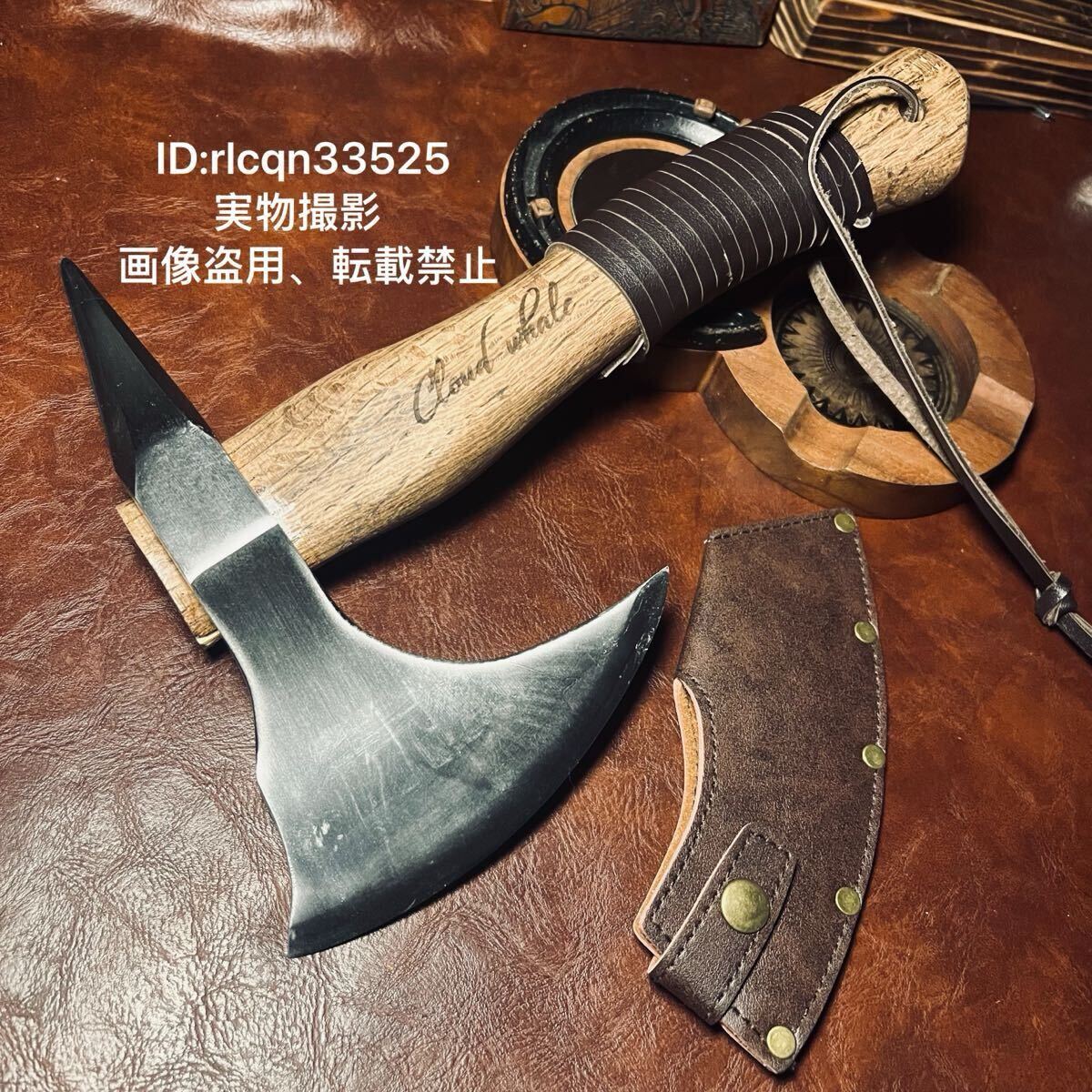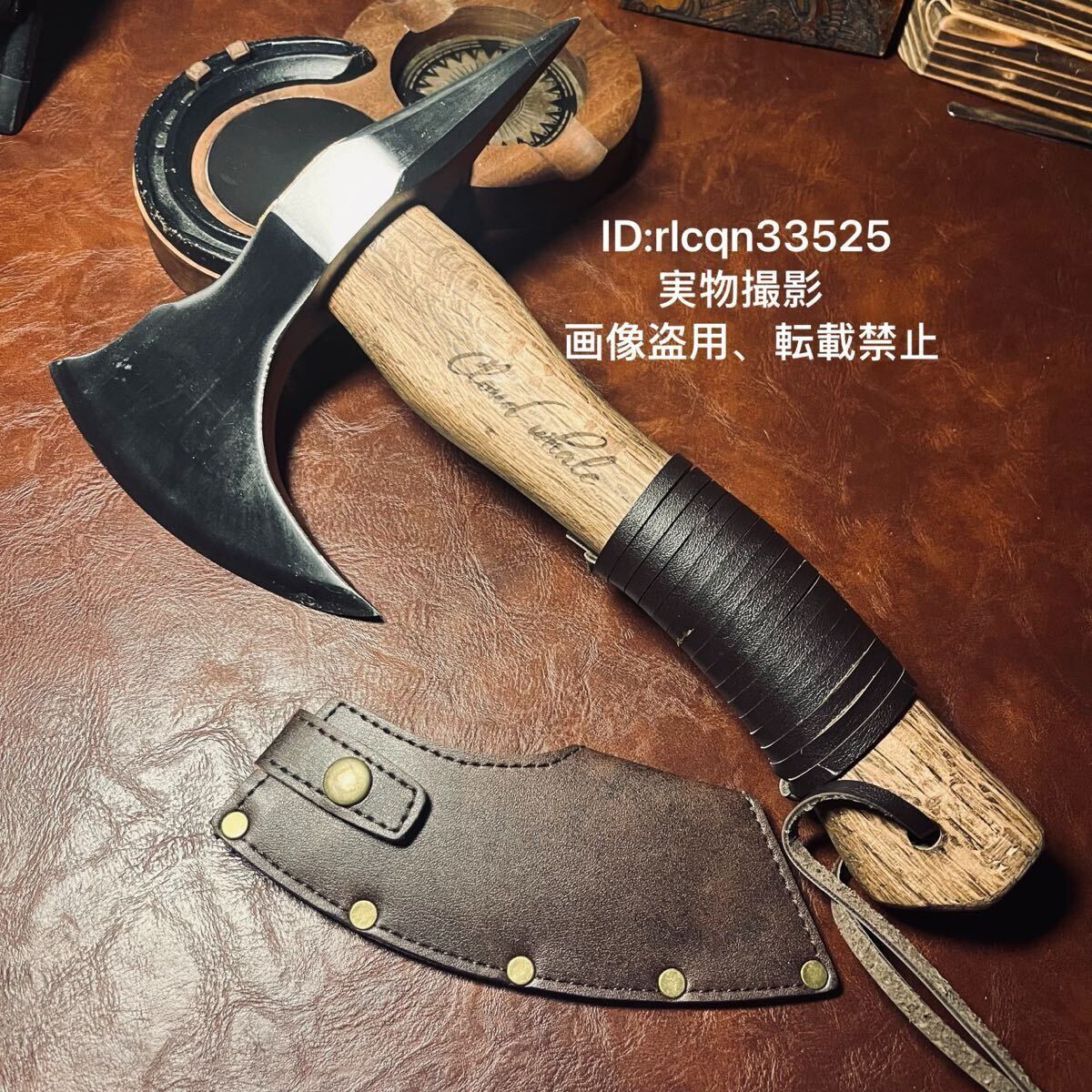 新発売 超高品質 薪割り山斧 鍛造 手斧 炭化木の柄 保護カバー付き キャンプ アウトドア 野外登山 30cm 900g