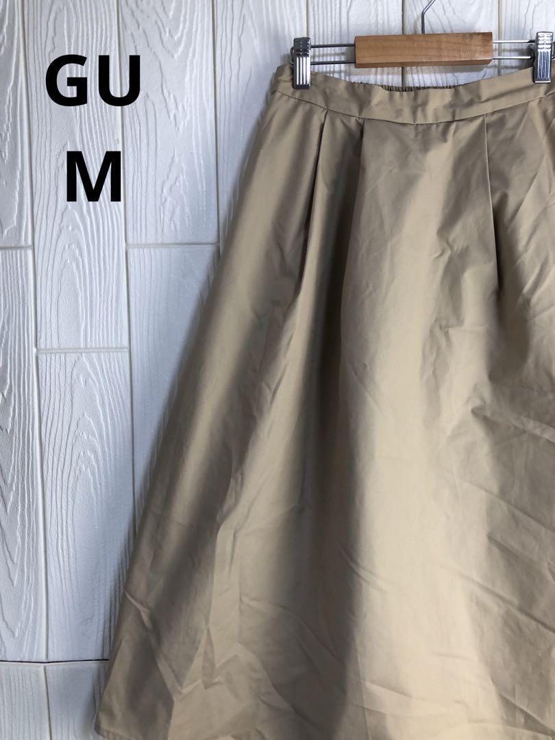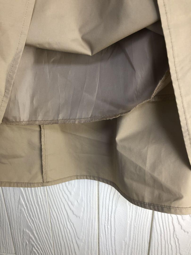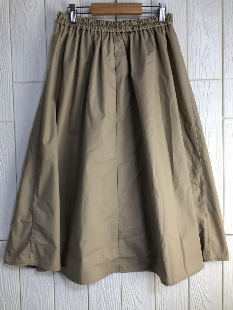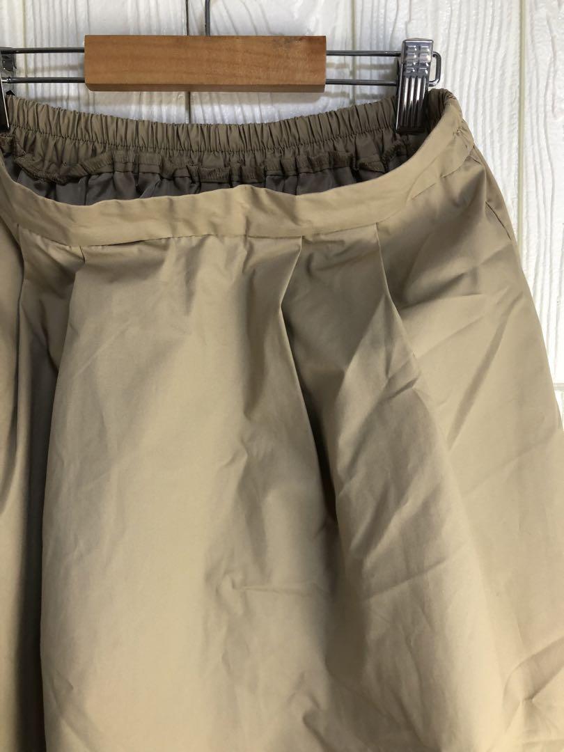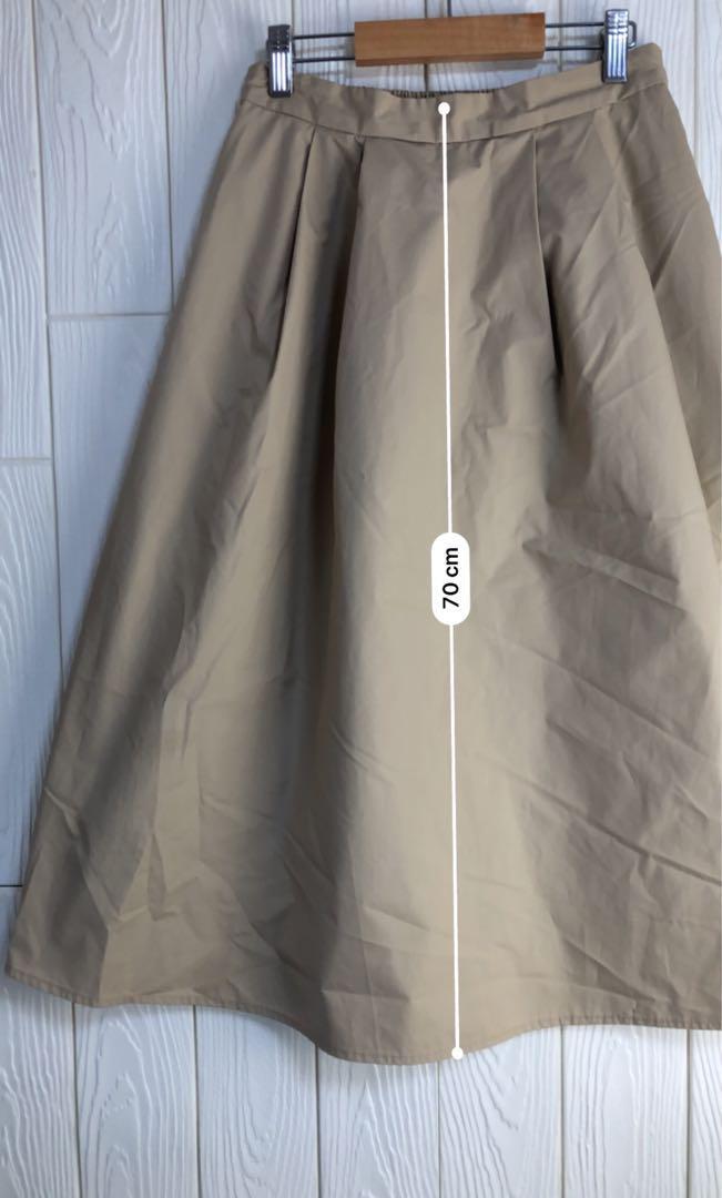 ベージュのフレアスカート、ウエスト62cm、丈70cmでスタイリッシュなデザイン。