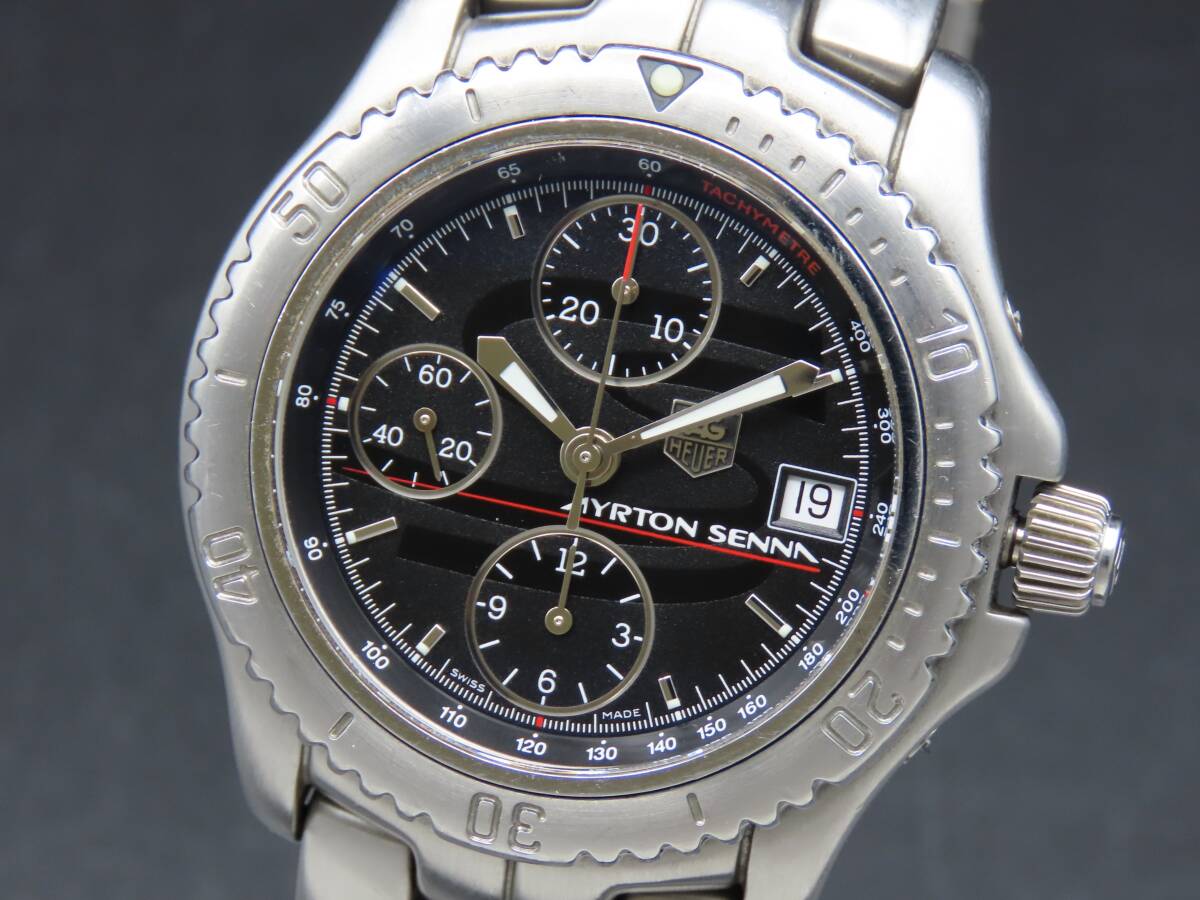 1円~! 稼動品★正規品 TAG HEUER タグホイヤー CT2114 リンク アイルトンセナ限定 クロノグラフ 自動巻き デイト メンズ腕時計 PPKLG1663