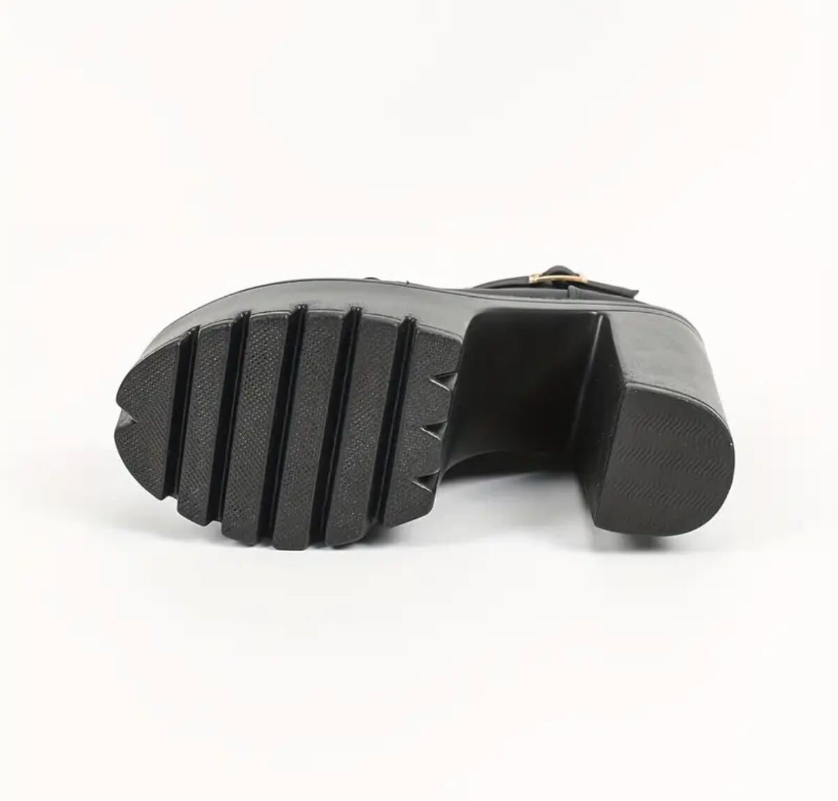 * 安定感抜群: 高いヒールでも、厚底のプラットフォームが傾斜を緩やかにし、安定した歩行をサポートします。