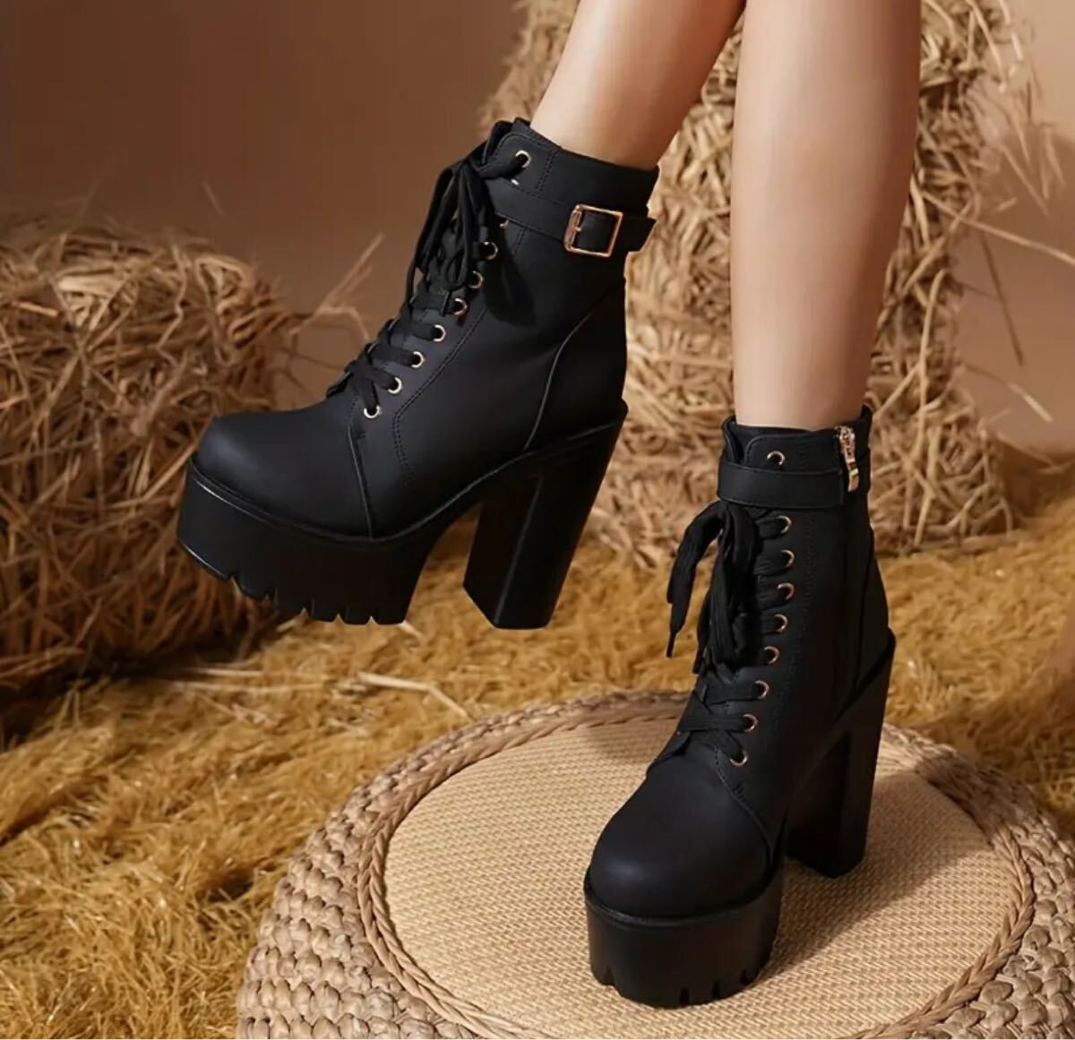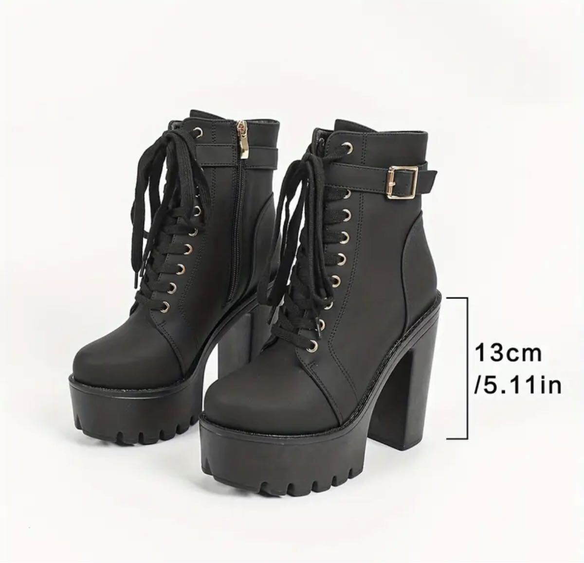 * デザイン性: 重厚なメタルバックルとクールなレースアップが、ストリートやパンクスタイルにぴったりのアクセント。