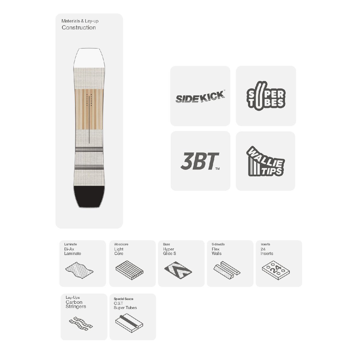 「Wallie」は、おなじみのスポットで新たな可能性を発見したり、今までの不可能を可能にすることができるボードです。パークやフリースタイルのスキルアップを目標に設計されており、スーパーチューブ、カーボンストリンガー、ユニークなウォーリーチップを搭載してます。ジェンダーレスコレクションの中の1本で、どんなスノーボーダーにもフィットするサイズ展開を提供しています。