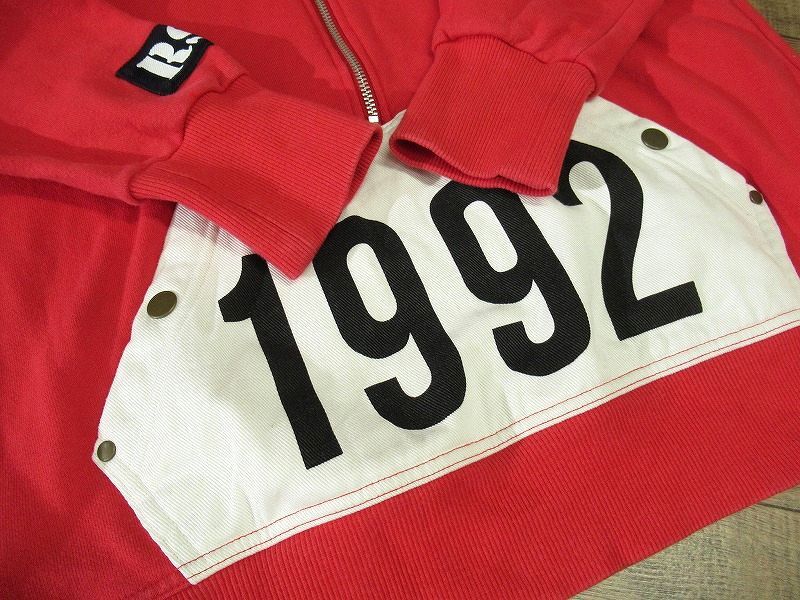 送無 G② SR181 名作 ROC STAR ロックスター HECTIC マッド ヘクティク 1992 プリント ワッペン 刺繍 ハーフジップ スウェット パーカー L