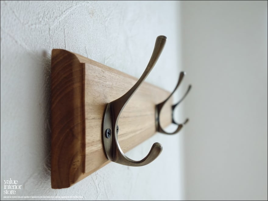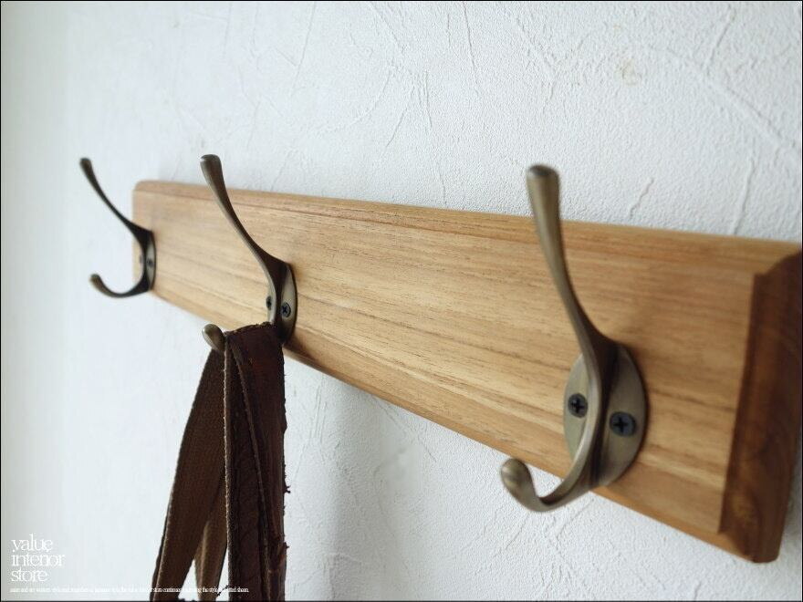 無垢 チークブラスフック3連N ウォールハンガー 新品 ウォールフック 壁掛けフック 真鍮 壁掛収納 総無垢 天然木 ナチュラル 手作り