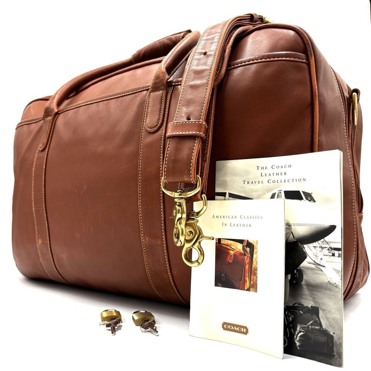 商品名:ボストンバッグ サイズ:高さ 約33cm 横幅 約50cm 奥行 約19cm ハンドルの高さ 約13cm ショルダーの長さ 調整可能 型番(シリアル):0554-305 色:ブラウン 素材:レザー 付属品:ショルダーストラップ 南京錠 鍵 特記事項:- | |