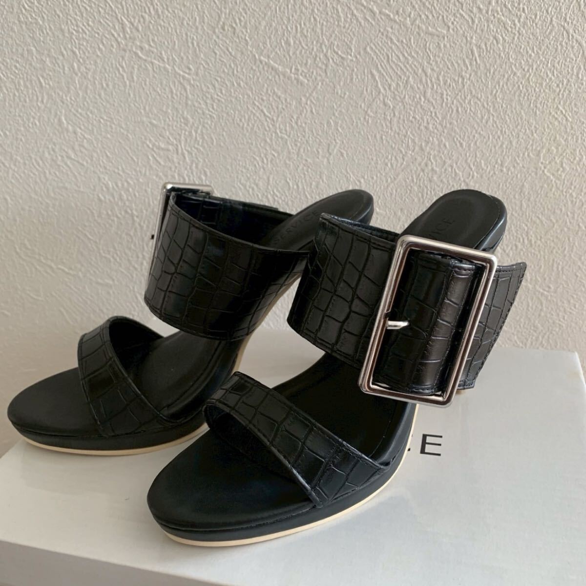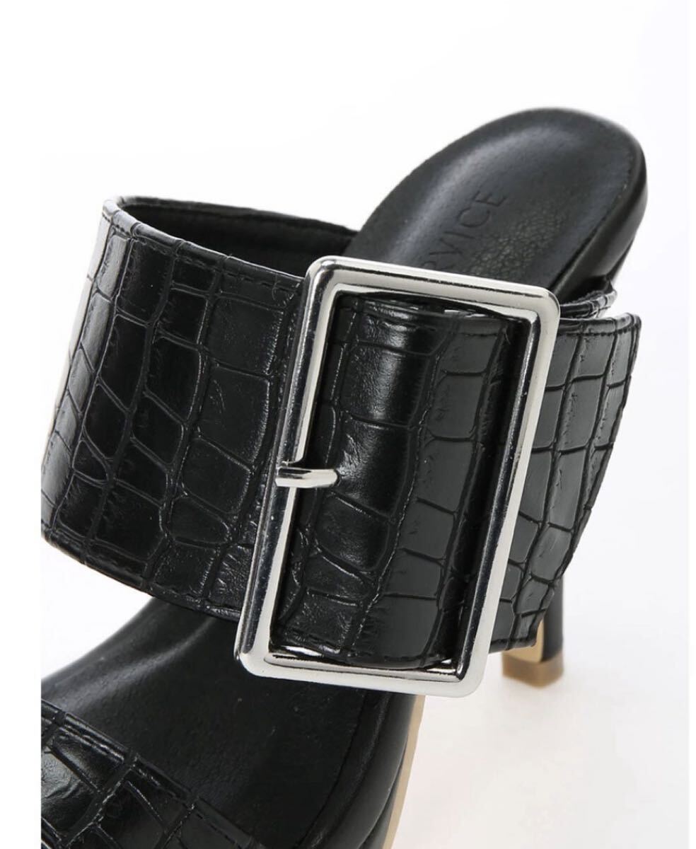 大振りのスクエアバックルがクールに映えるワイドベルトサンダル。