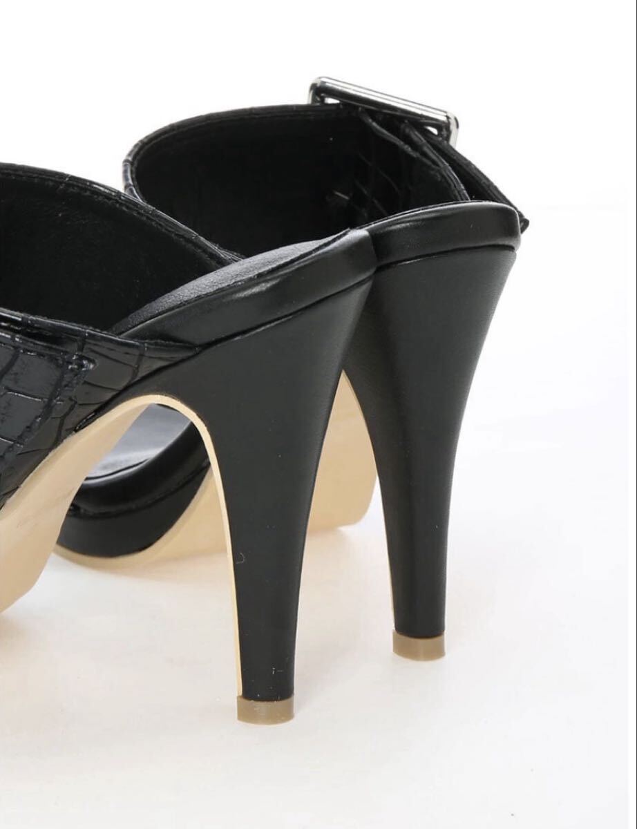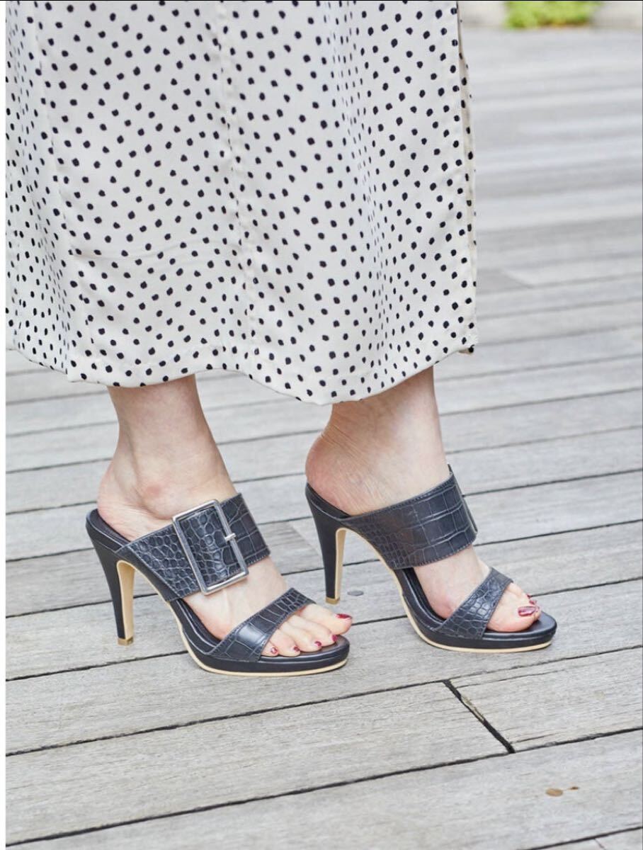 エッジの効いたシャープなヒールシルエットが足元をエレガントに演出してくれます。