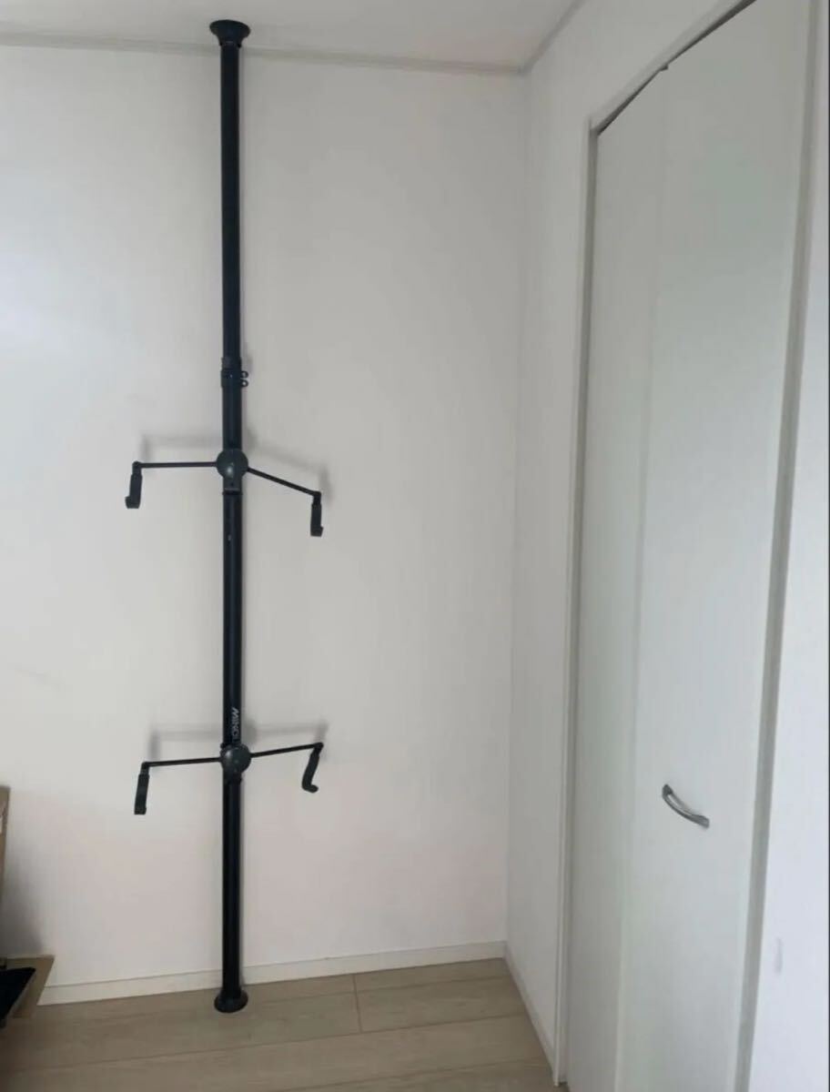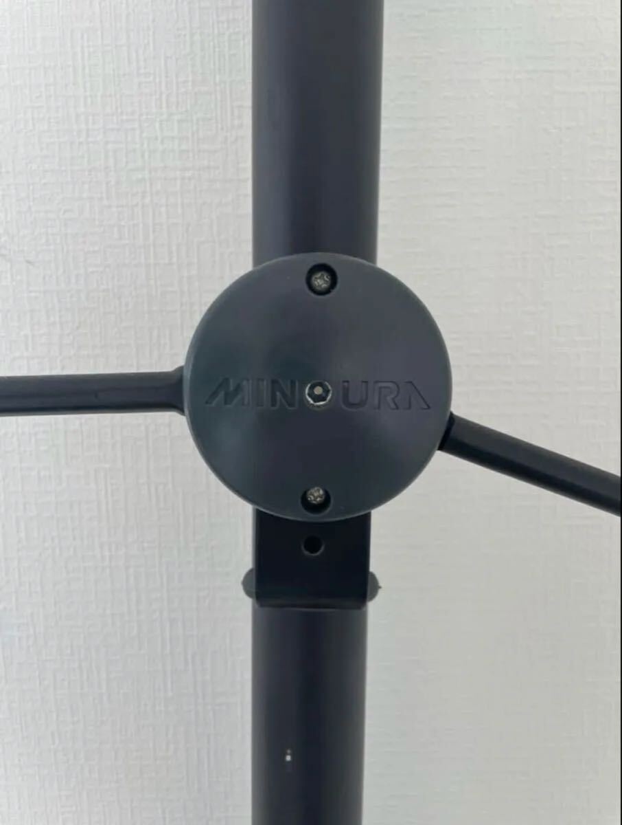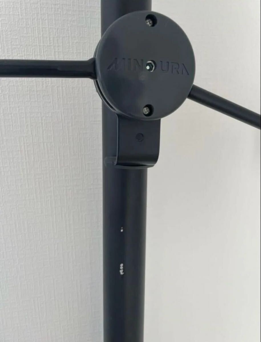 MINOURA製のブラックディスプレイスタンド、安定性とデザイン性に優れています。