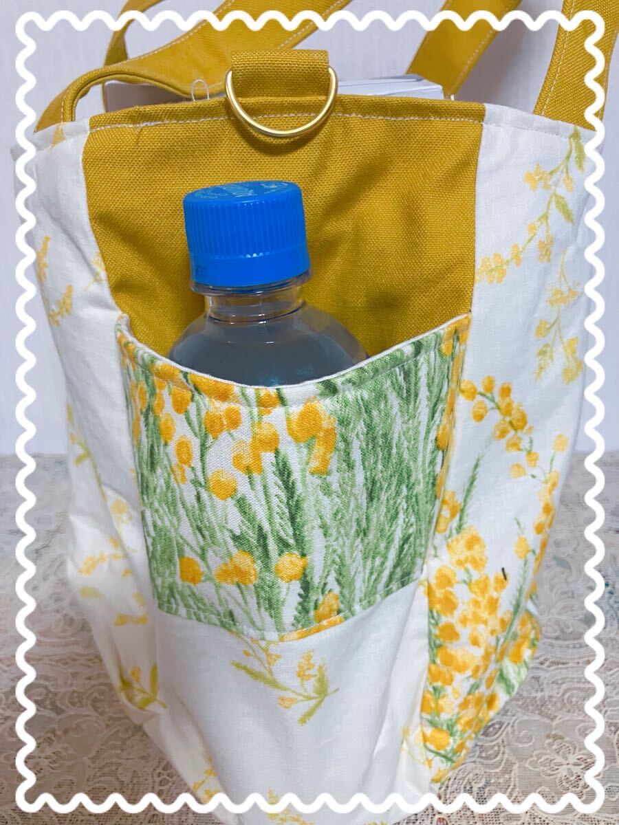 両サイドに ペットボトルが入るポケットをつけてました。 中にも大きなポケットが2つあります。