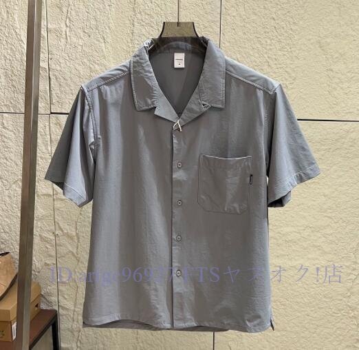 ★新品3XL 紺 テンセル サマー シャツ 開襟 オープンカラー 半袖 接触冷感 メンズ 胸ポケット 速乾 ストレッチ 薄手 盛夏 ゆったり