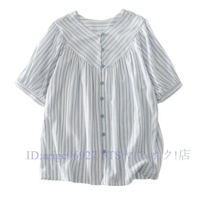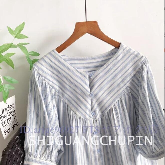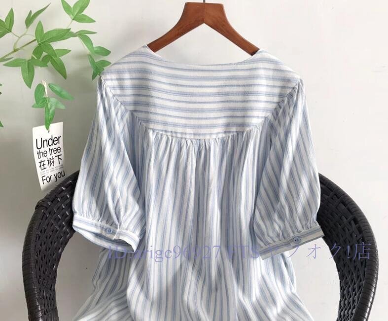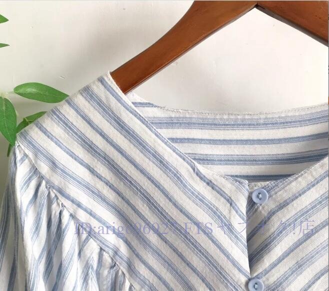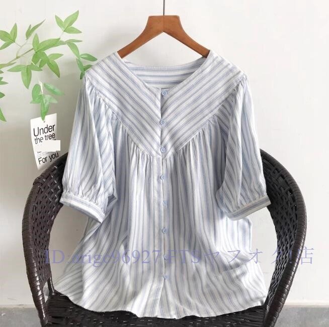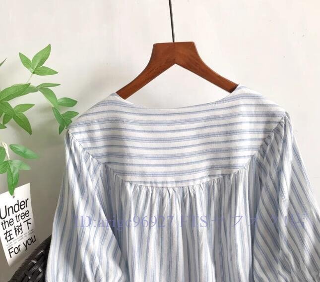 ★新品チュニック ワイシャツ トップス Vネック 綿100% ゆったり オシャレ フリーサイズ ナチュラル