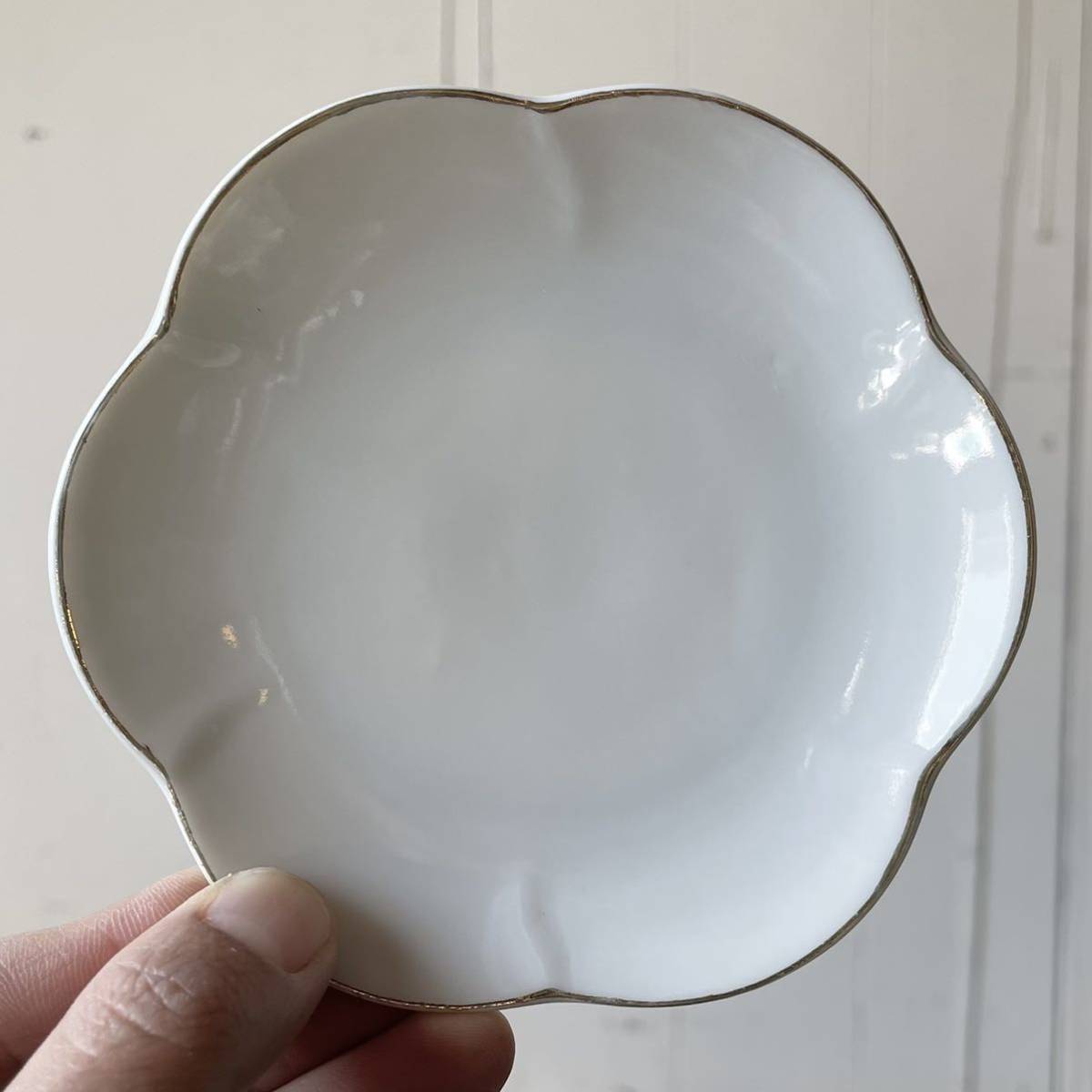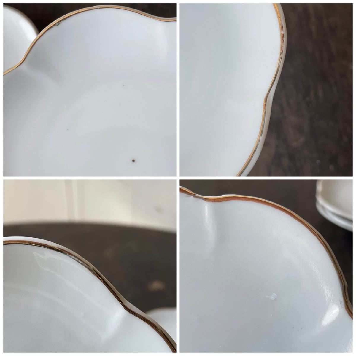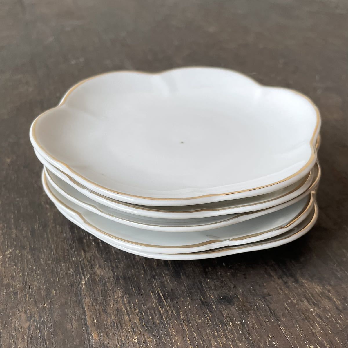 5枚set 金縁花モチーフ 白磁 小皿 白磁 デットストック 1970年代貿易 検: 銘々皿 豆皿 小皿 取り皿 レトロ 陶器 アンティーク ビンテージ
