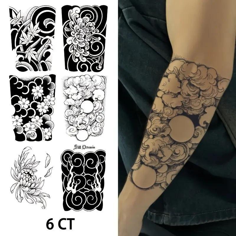 台紙サイズ 約 17cm×24cm ※敏感肌、目の近く、または接着剤にアレルギーがある場合は使用しないでください。 【使用方法】 ●透明フィルムを剥がし、スプレーまたは濡れタオルでステッカーをしっかりと濡らして下さい。 ●10秒間、肌に密着させ、ステッカーを剥がします。その後約2時間濡らさないで下さい。 ●約、6時間後に発色開始→約24~48時間程度で完全発色します。 ●約1~2週間持続します。 【貼る時のコツ】 シートそのままの大きさだと曲げ辛く密着しにくい為、余白部分を切ってから貼るのがコツです。 ※商品画像の色味は画面でみた場合と実際は多少の色差が生じる場合がございます。 ※海外製品のため入荷時点でしわや折れ目が付いている場合がございますが、ご使用には問題ございませんので予めご了承ください。