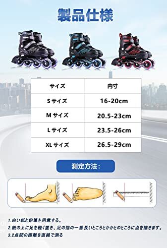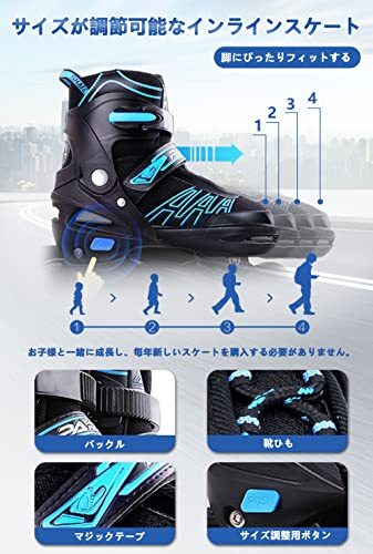 【調節可能】 調節可能なインラインスケートはSX〜XLの4サイズを自由に選択可能です。お子様と一緒に成長し、毎年新しいインラインスケートを購入する必要がありません。