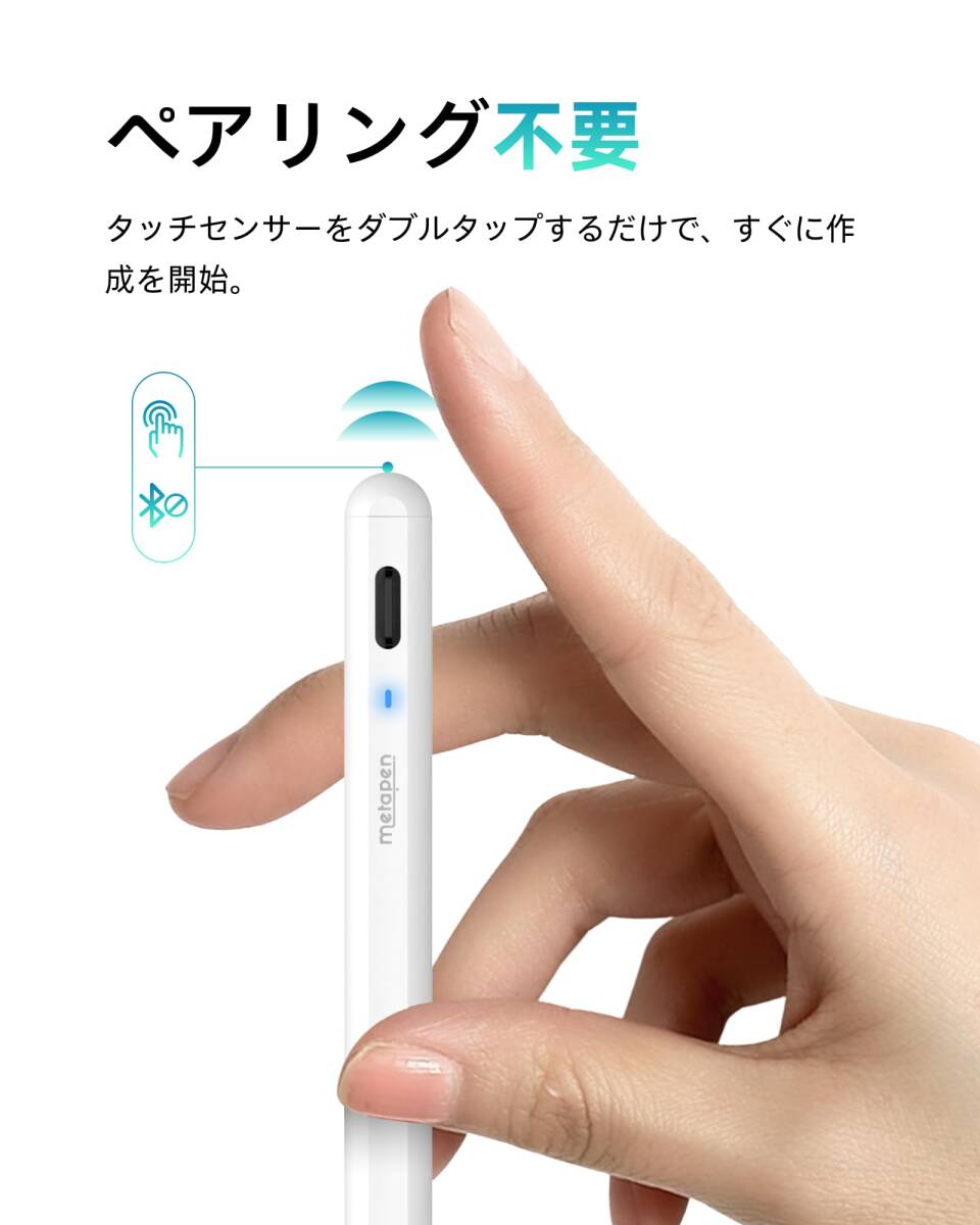 Metapen A8 iPad ペン 2018年~2025年i Pad対応 iPad ペンシル 鉛筆 傾き感知 磁気吸着機能 アップルペンシル 極細 超高感度 パームリジェクション機能 軽量 耐摩 タッチペン USB-C Type-C急速充電 スタイラスペン 子供 学生 デザイン用 ドローイング用 「白ホワイト」