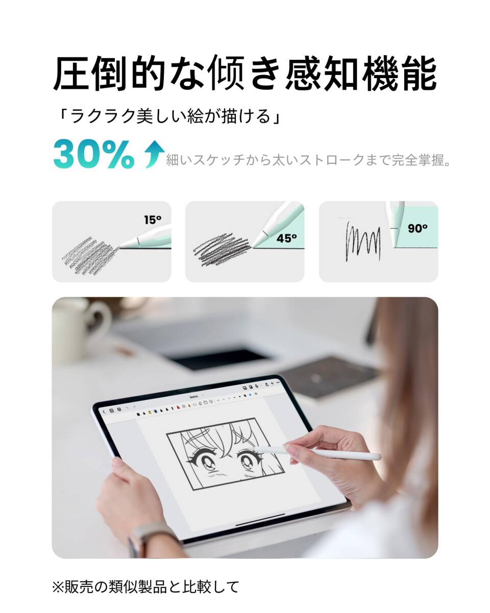 磁気吸着機能 傾き感知 アップルペンシル 鉛筆 極細 超高感度 ペンシル パームリジェクション機能 軽量 iPad 耐摩 iPad
