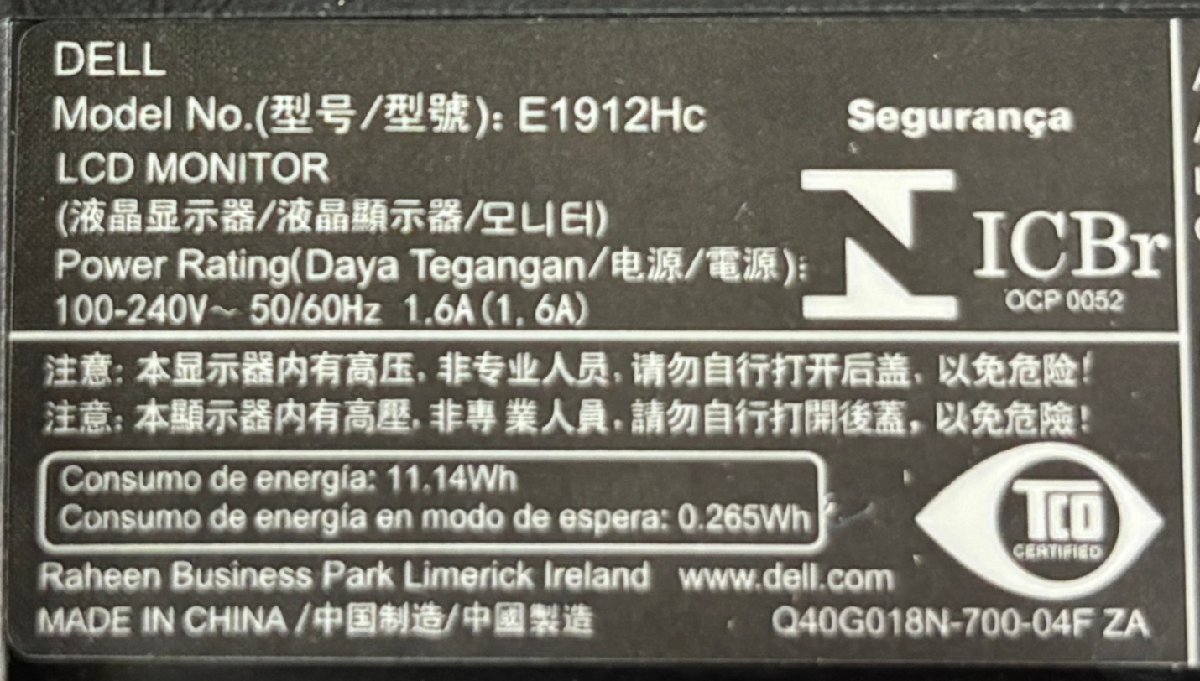 | M◆DELL(デル)/18.5型液晶ディスプレイ/E1912Hc/LEDバックライト/VGA |