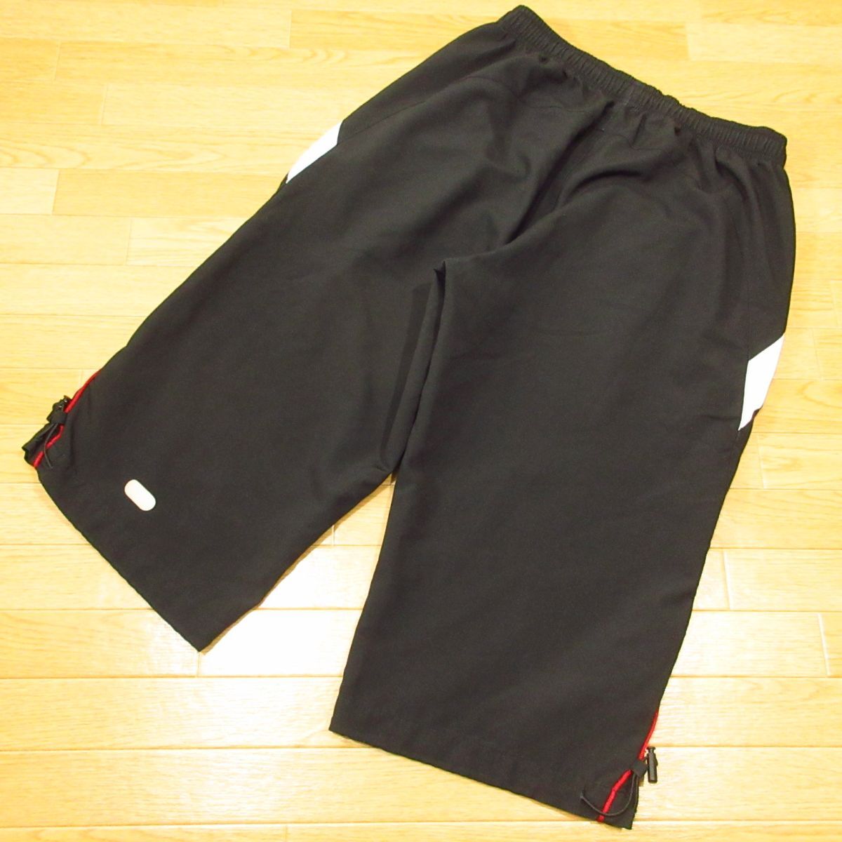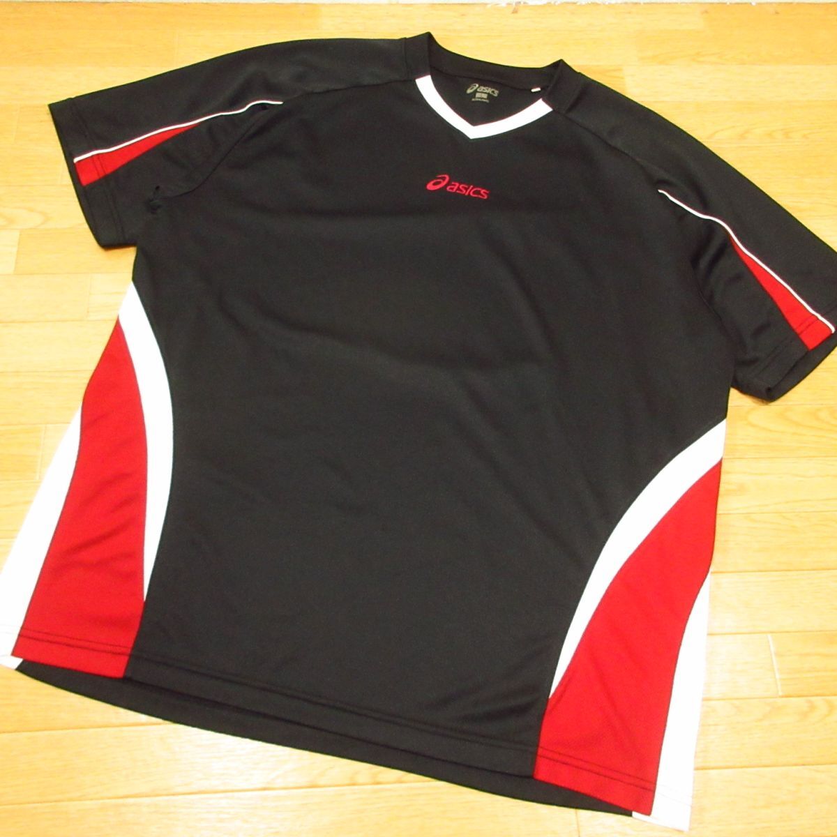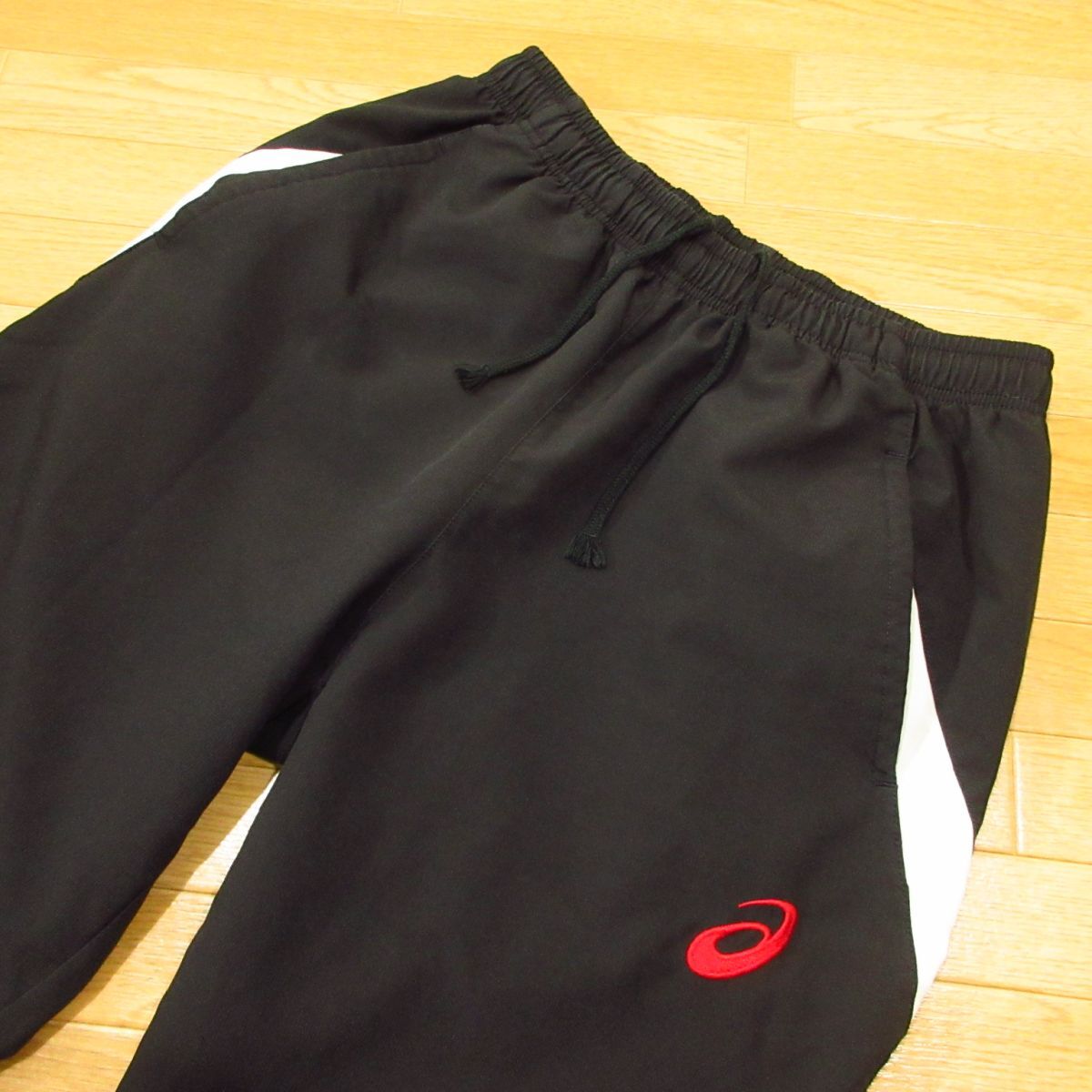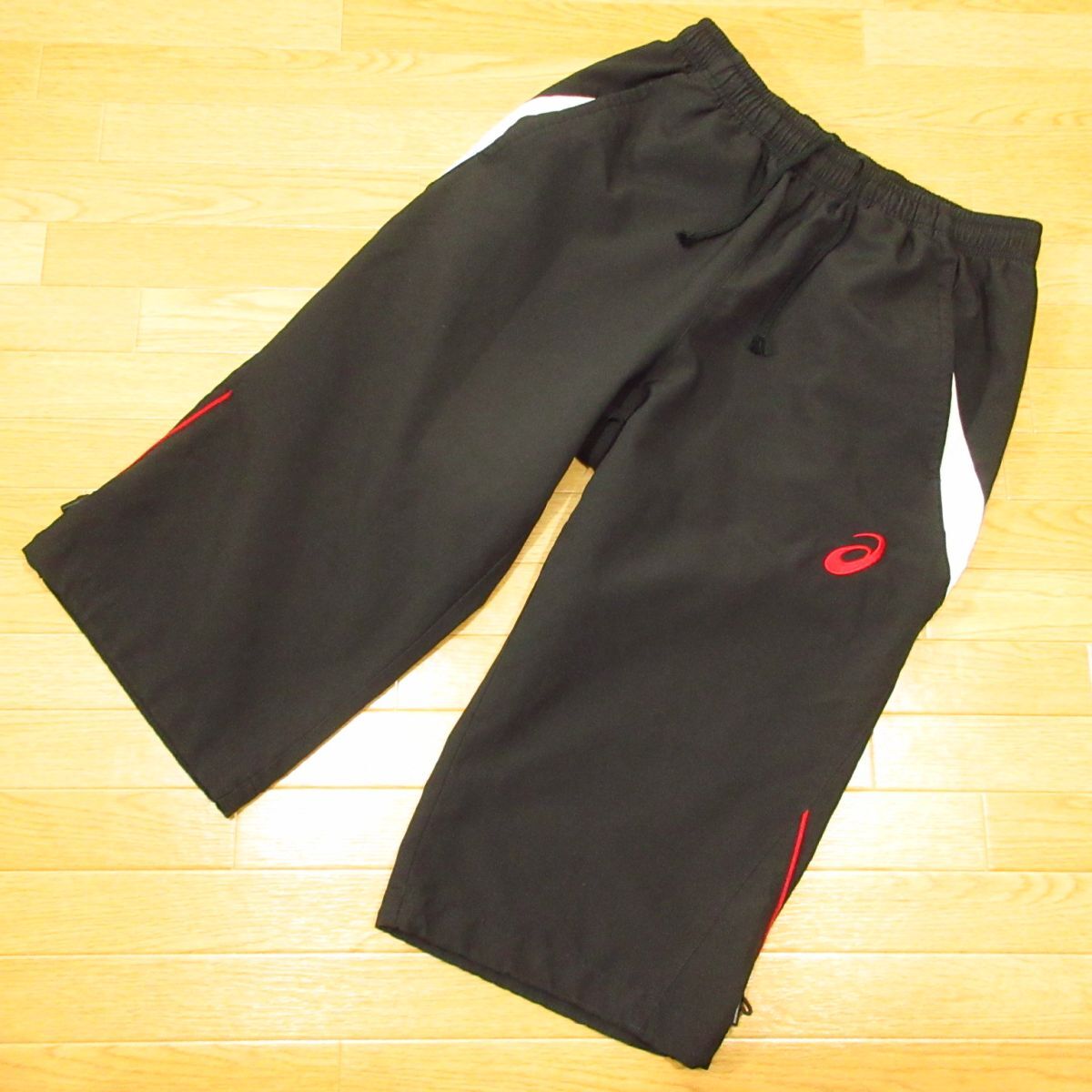 ◎美品!asics アシックス M-L 上下セット / ジャージ 半袖 Tシャツ & 7分丈パンツ クロップドパンツ 速乾 メンズ 黒x赤◆BA3474
