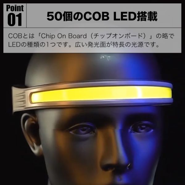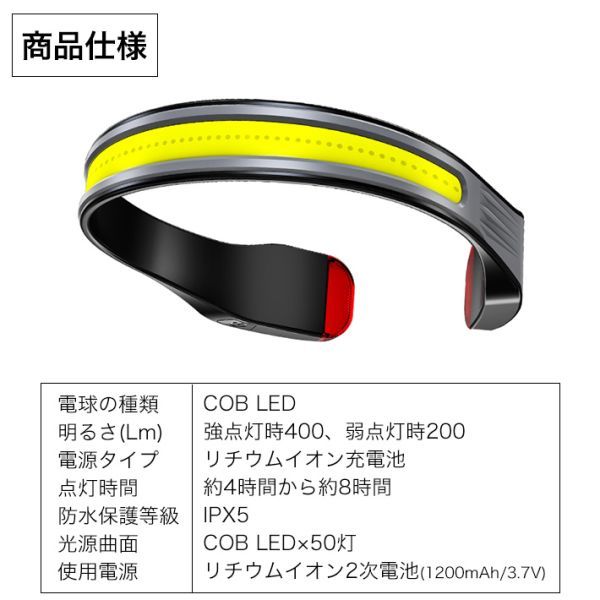 進化版 50個COBLED ヘッドランプ 読書ライト ネックライト 警告灯 充電式 前後ライト 警告灯 防水 ヘッドライト 400ルーメン 4モード 210度広角 小型 軽量 作業灯 キャンプ TypeC 充電 軽量
