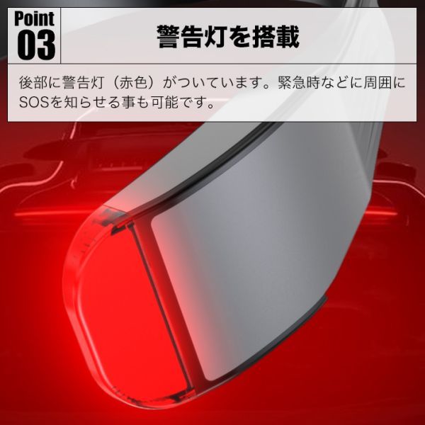 後部に警告灯(赤色)がついています。緊急時などに周囲にSOSを知らせる事も可能で