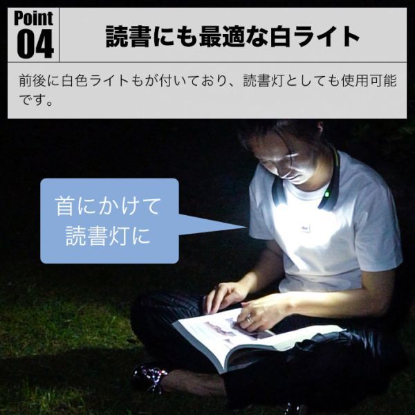 前後に白色ライトもが付いており、読書灯としても使用可能です。