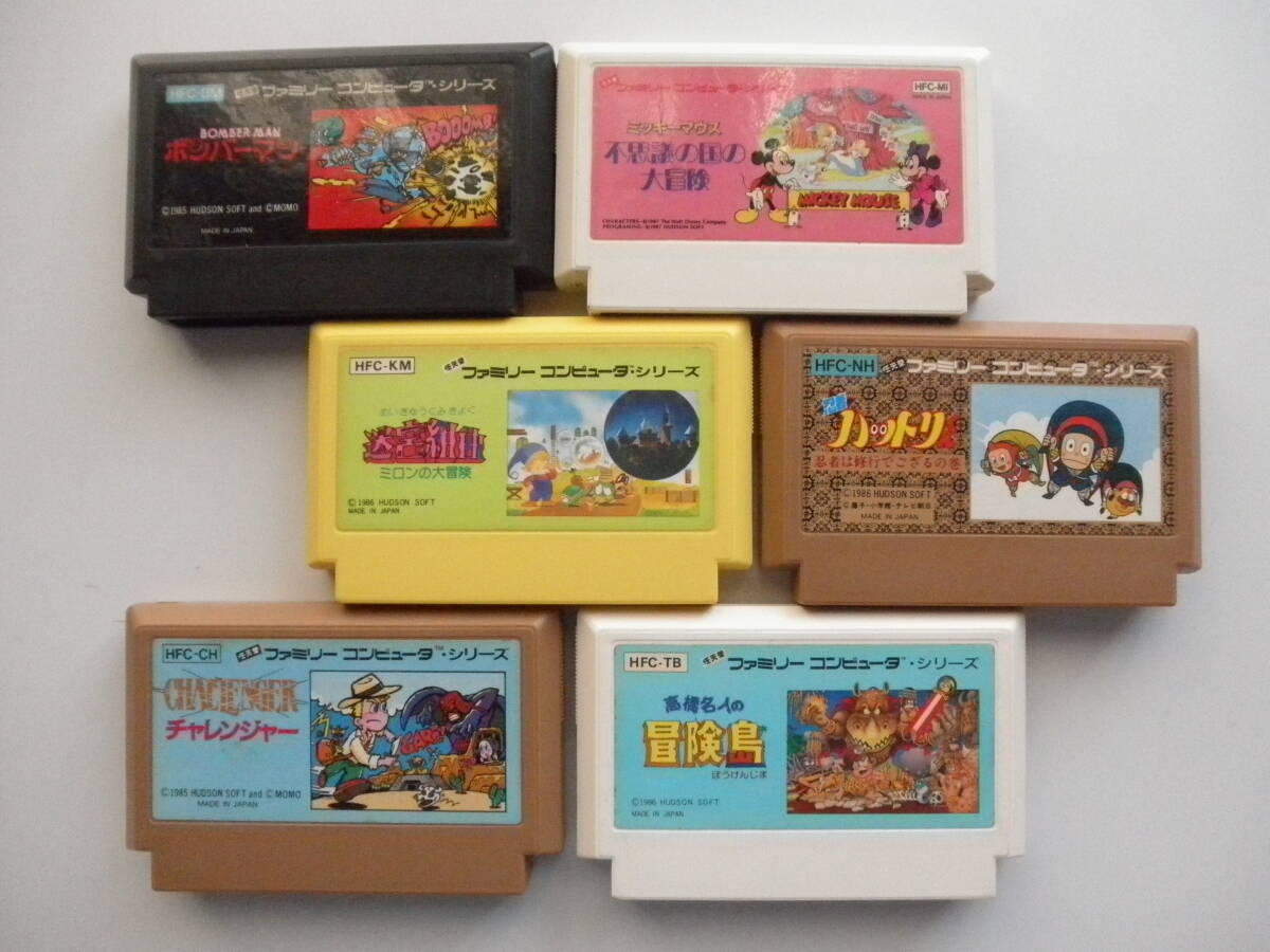 ●FCソフトセット6本 ハドソン裏ラベル17(ボンバーマン、迷宮組曲、ミッキーM、ハットリくん、高橋名人、チャレンジャー) 初期起動確認済
