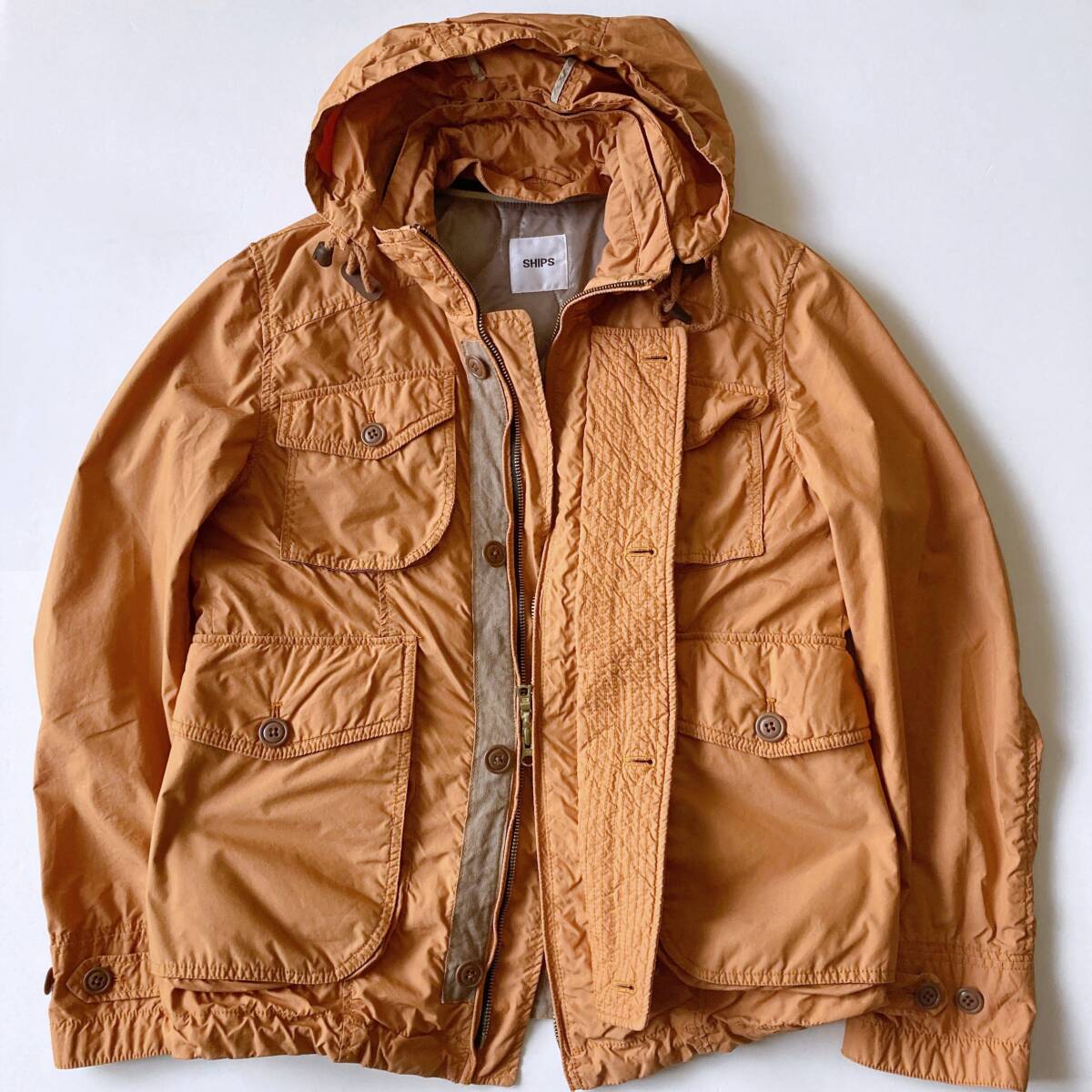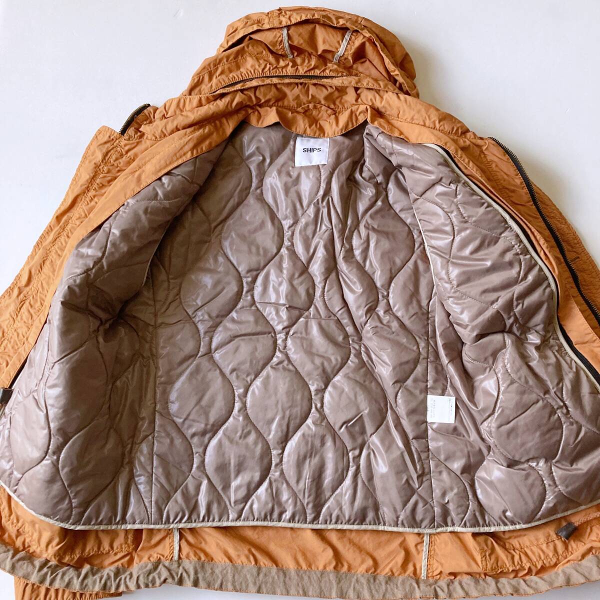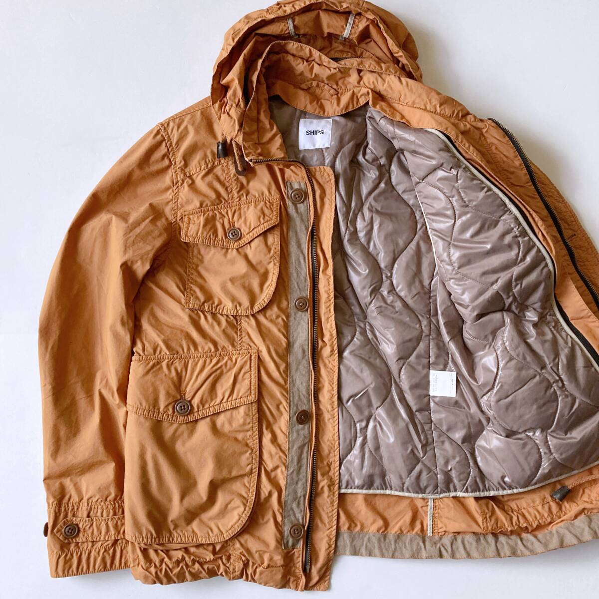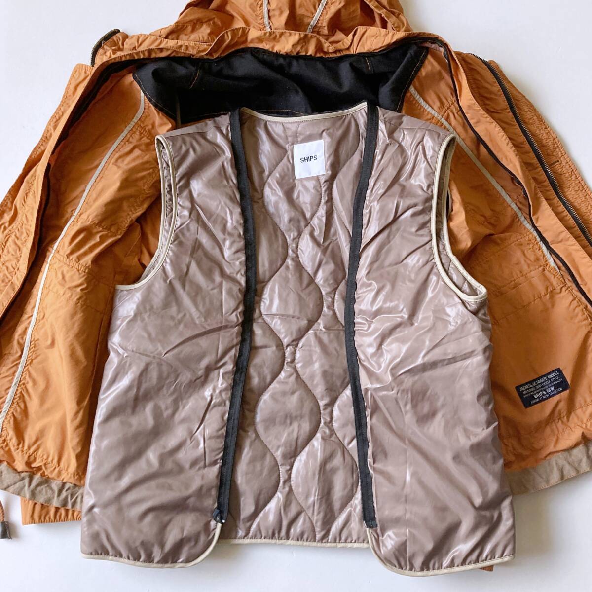 SHIPS シップス コットンナイロンマウンテンパーカー 中綿ベスト付き ライトオレンジ S 3WAY ミリタリーフードジャケット パッカリング