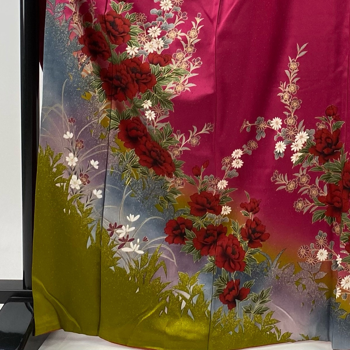 振袖 秀品 牡丹 桜 金彩 染め分け 赤紫 袷 身丈169 裄丈69 L 正絹 【中古】 |