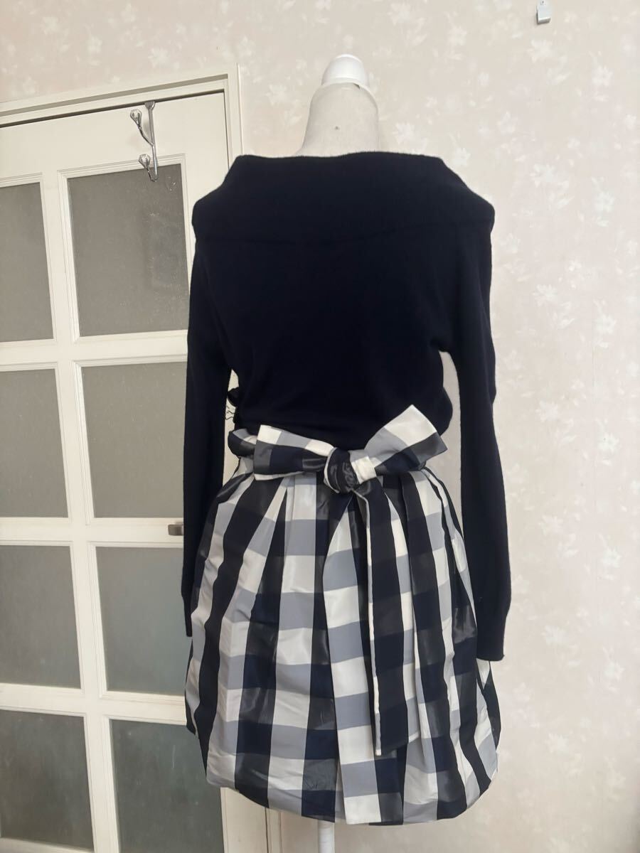 トップはアンゴラ混の黒ニットでスカート部分はポリエステルトリアセテートです。