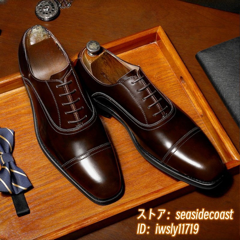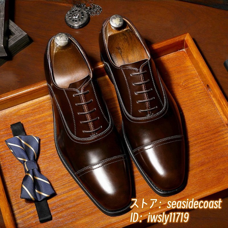 最高級★定価13万 革靴 牛革 職人手塗り上げ 本革 ビジネスシューズ メンズ イタリア製 レザーシューズ 紳士靴 フォーマル 珈琲色 27.0cm