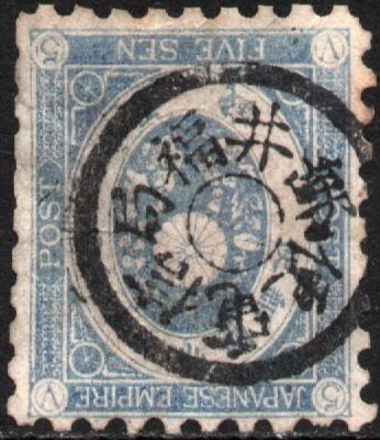 ○U小判5銭・二重丸電信印 「福井郵便電信局」