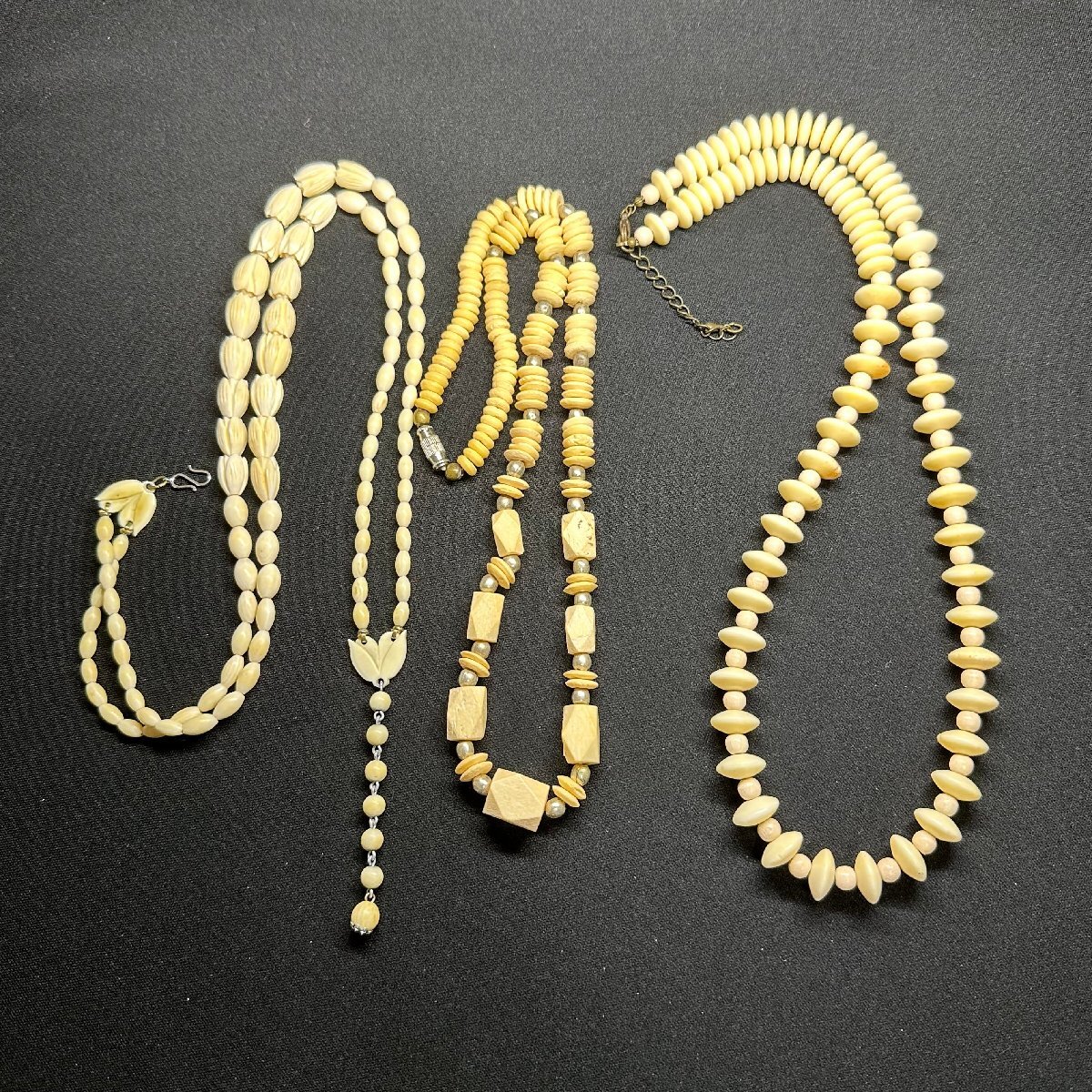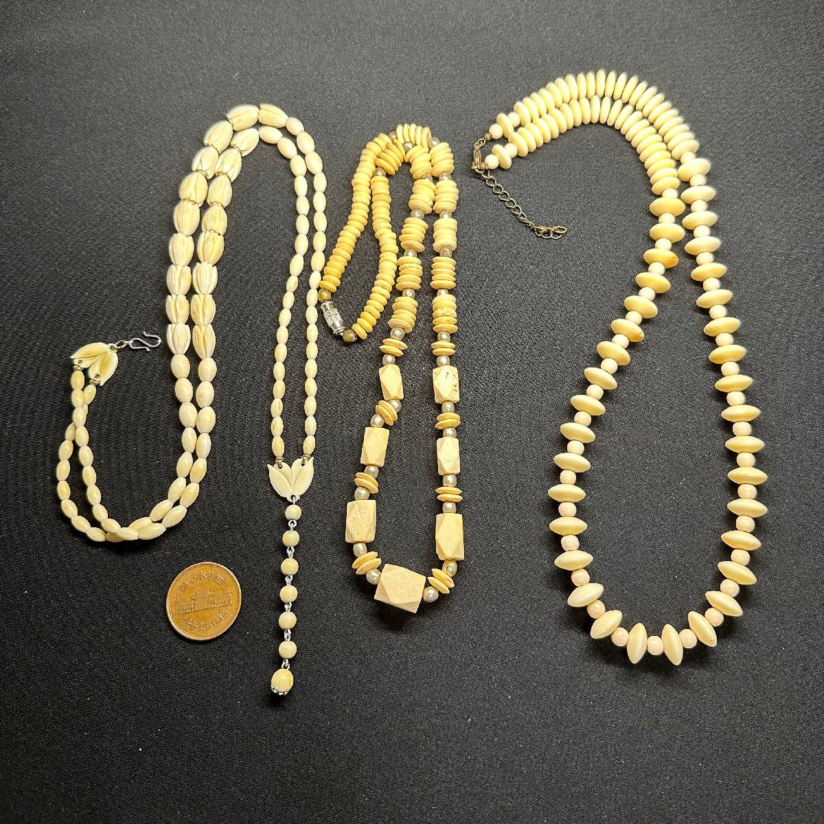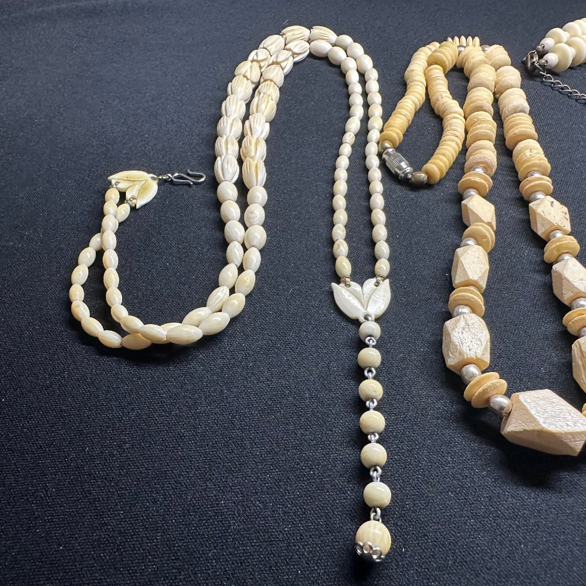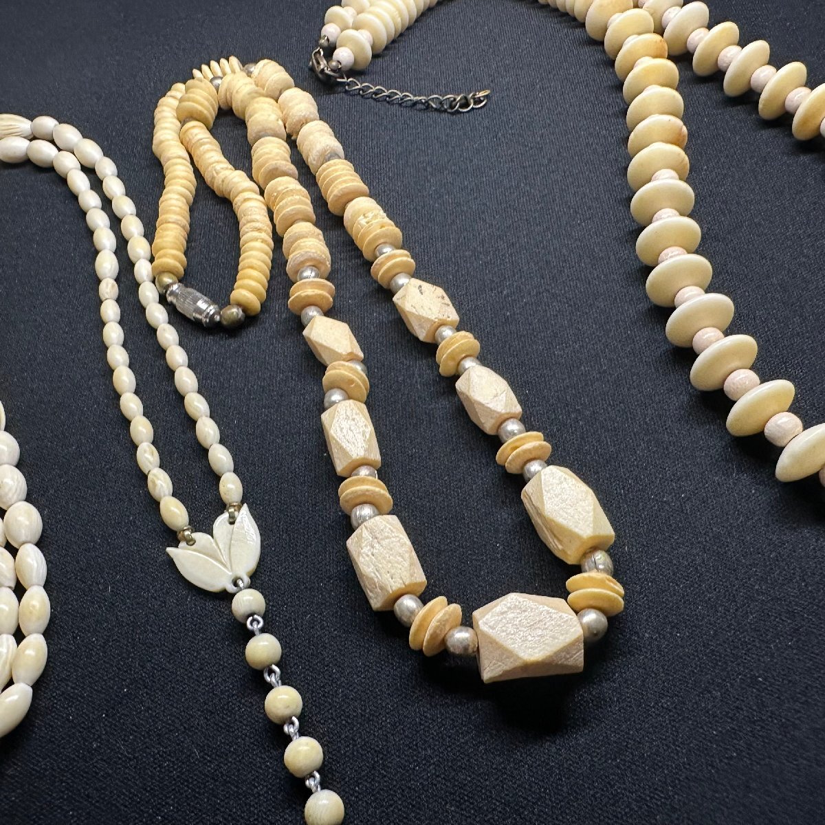 q5741 ヴィンテージ 木/角 ネックレス ペンダント アクセサリー エスニック アイボリー系 まとめ売り