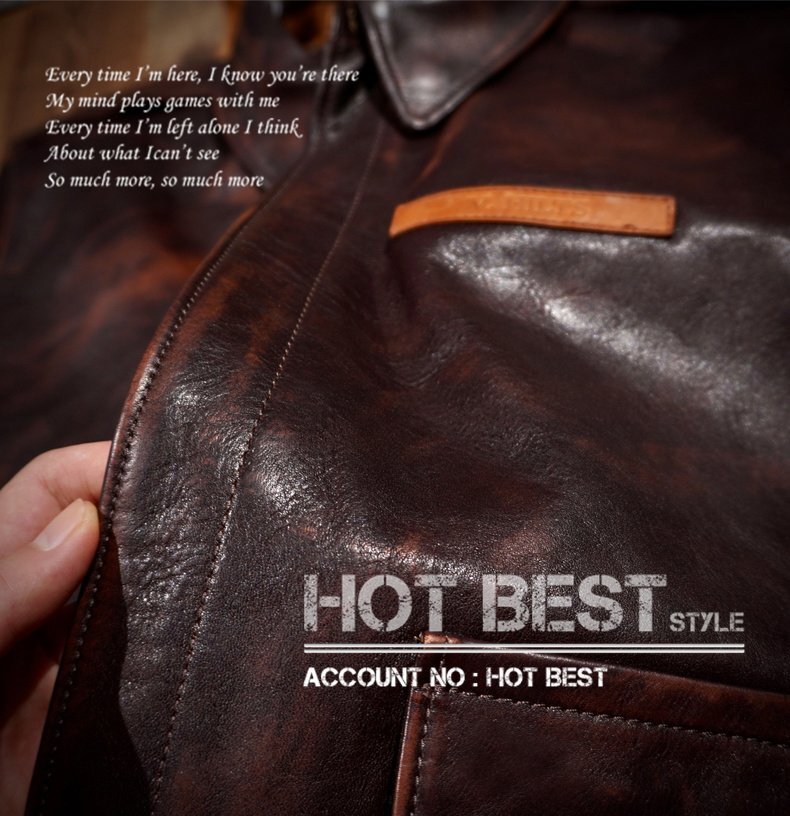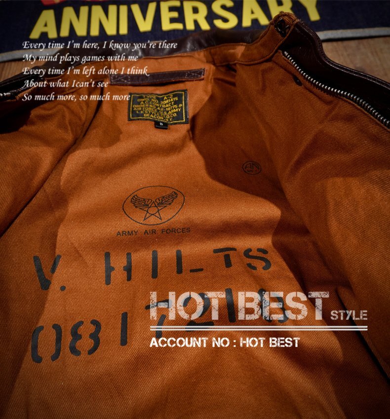1.3mm 茶芯カウハイド復刻40's USAF TYPE A-2 V. HILTS ヴィンテージ 革ジャン フライトジャケットWWII 大脱走タンニン鞣し 牛革 Y1298/5XL