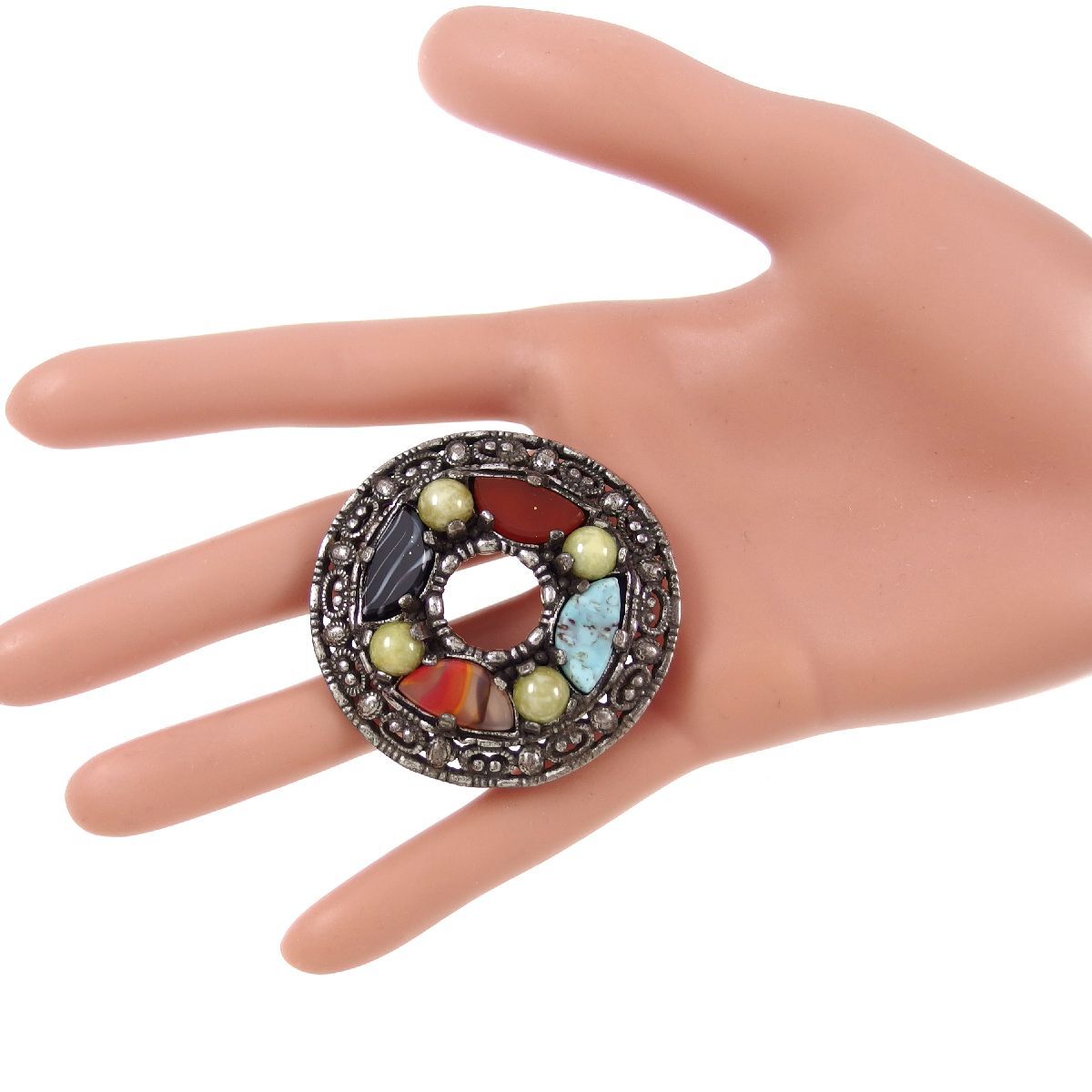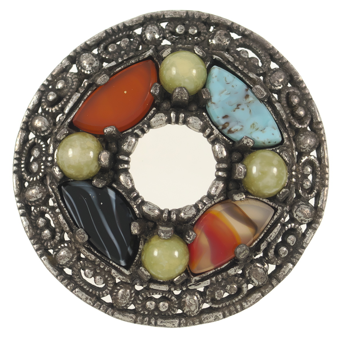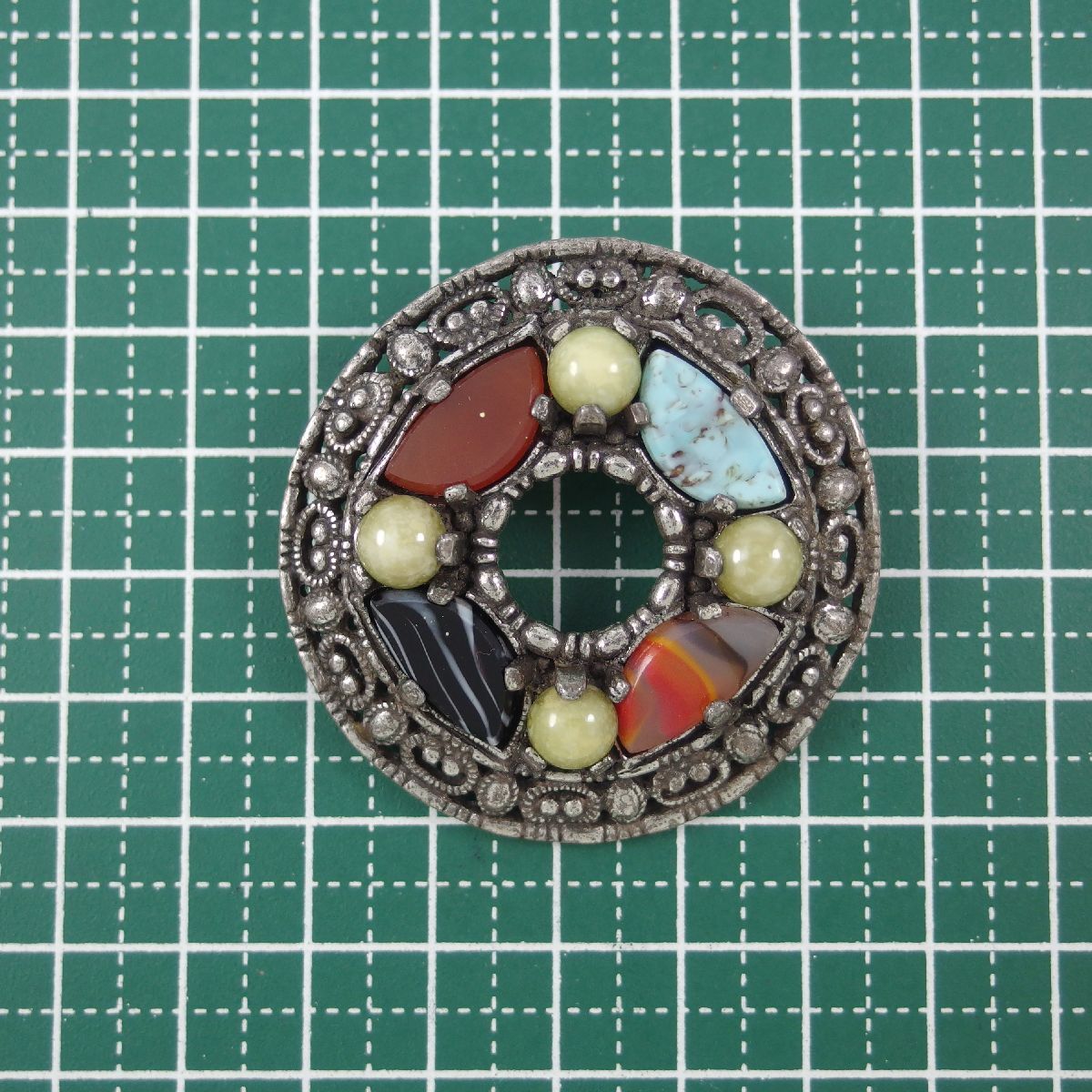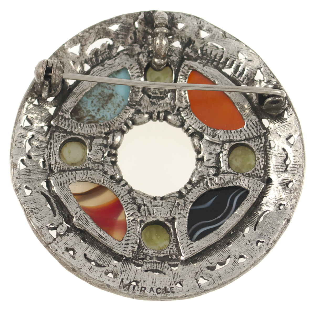 UK4069◆【MIRACLE】◆ リース型 マルチカラー ストーン 色石 ミラクル 英国 イギリス ケルト ◆ ヴィンテージブローチ