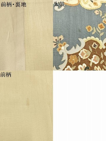 【正絹】 状態は接写画像のように 太鼓・前柄に薄い汚れがございますが その他特に目立ったシミ汚れなどもなく大変良い状態です。 大変上質な逸品になります。 お安く出品致しますので、是非この機会にいかがでしょうか? ※接写画像のように前柄・裏地に接ぎがございますが着用には問題ありません。 |