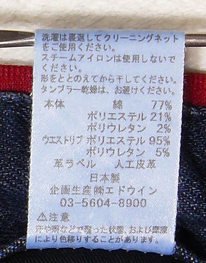 ☆エドウイン(EDWIN)ER007 ジャージーズ テーパード メンズデニムジーンズ サイズXL 実寸W90センチ 股下75センチ