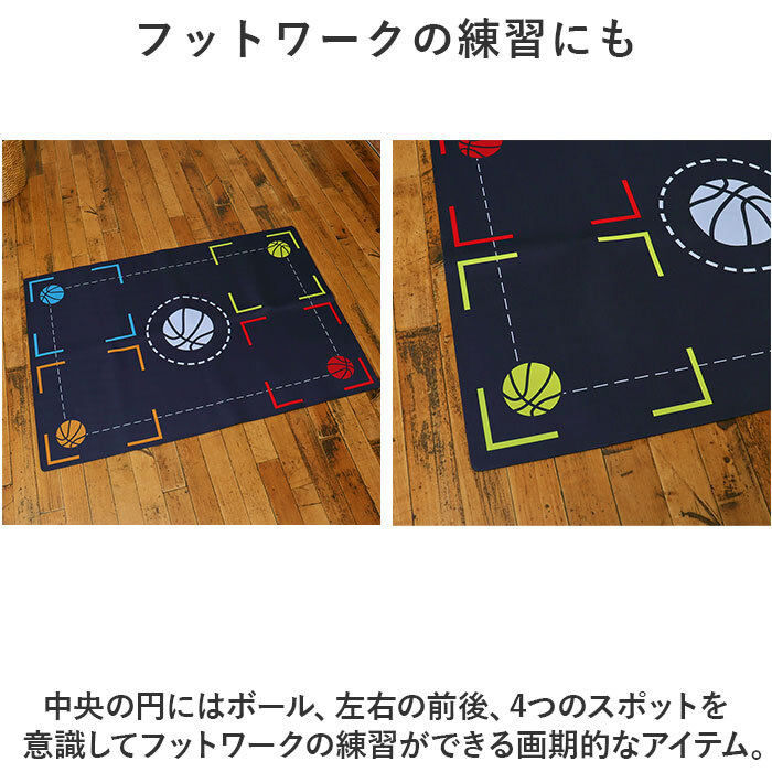 商品説明 | ・・バスケのスキルアップに!「バスケ トレーニングマット」が登場。 ・【様々な練習ができるマット】 ・狭い場所でも瞬発力、バランス力、フットワーク、オフェンス、ディフェンス等幅広い練習ができるトレーニングマット。 ・【フットワークの練習にも】 ・中央の円にはボール、左右の前後、4つのスポットを意識してフットワークの練習ができる画期的なアイテム。 ・【滑り止め加工で安心】 ・マットの裏面には滑り止め加工を施し、激しい動きでもズレることなく安心して使用可能。 ・【お手入れ簡単】 ・汚れが気になったらサッと拭き取りできるので、お手入れラクラク。 ・【コンパクトに収納可能】 ・使わない時はコンパクトに折りたためるから、収納場所も選ばない◎ ・【選べるサイズとカラー】 ・お子さまから大人まで、大きさが選べる2サイズ展開。お好みのデザインを選んで。 |
