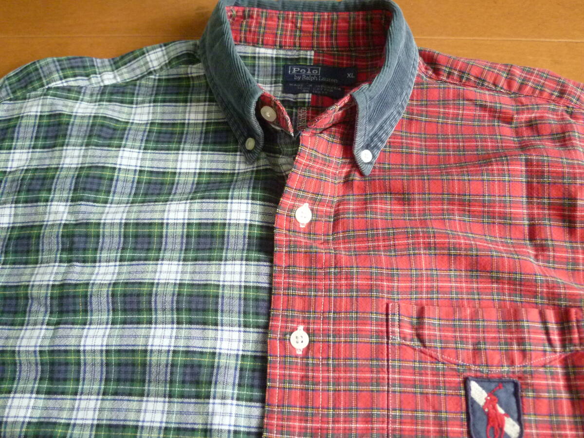 ラルフローレン(POLO)のタータンチェック柄ボタンダウンシャツ XLサイズ ポケット付 VAN JAC