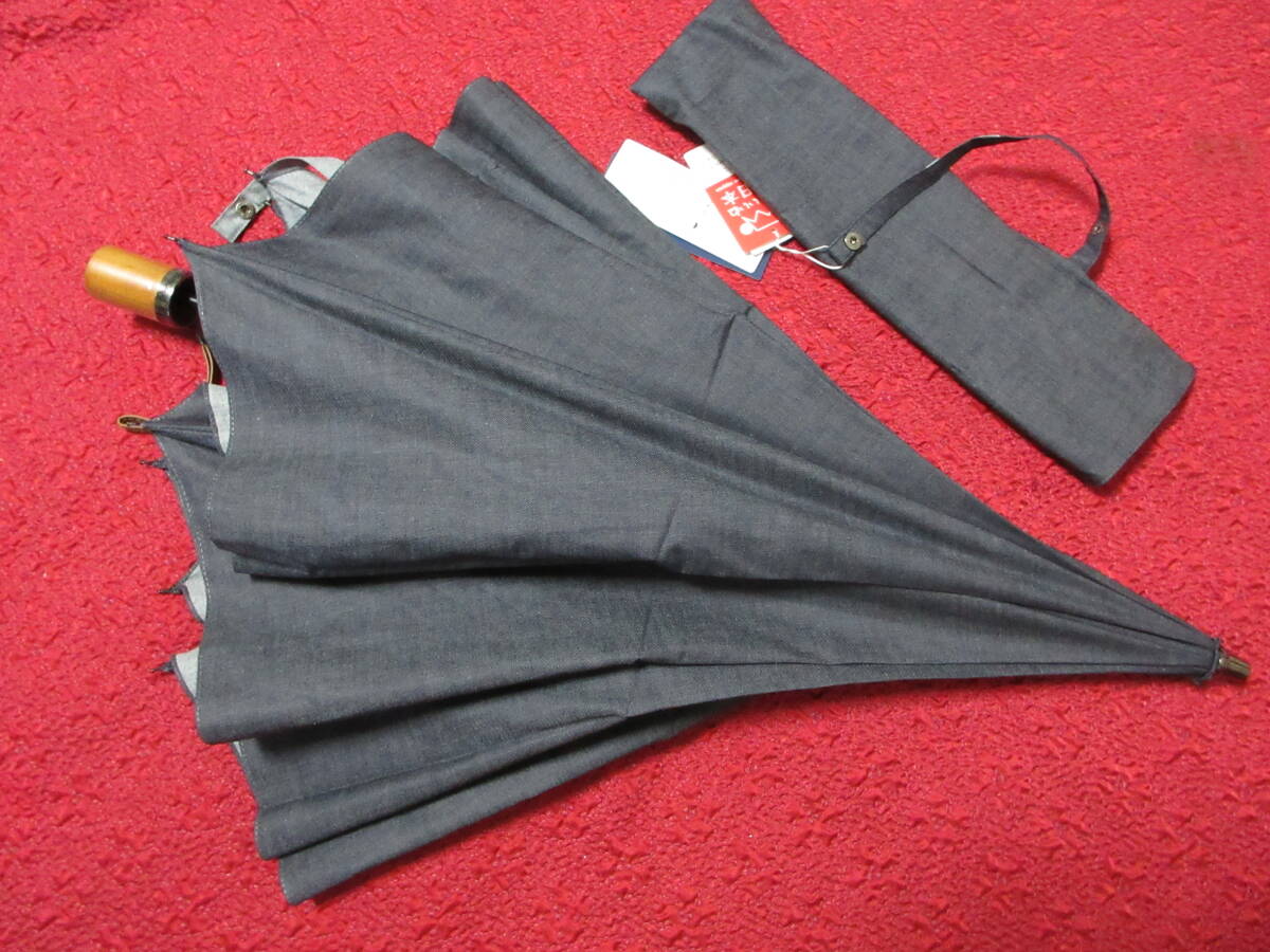 即決 タグ付き未使用 雨の時には使えない メンズ日傘 紺 日本製 オーロラ 岡山デニム 折りたたみ 定価、11,000円