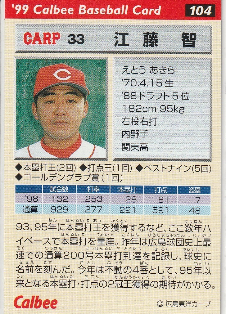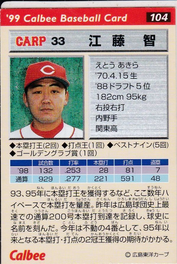 ●1999カルビー 【江藤 智】 BASEBALL CARD No.104:広島