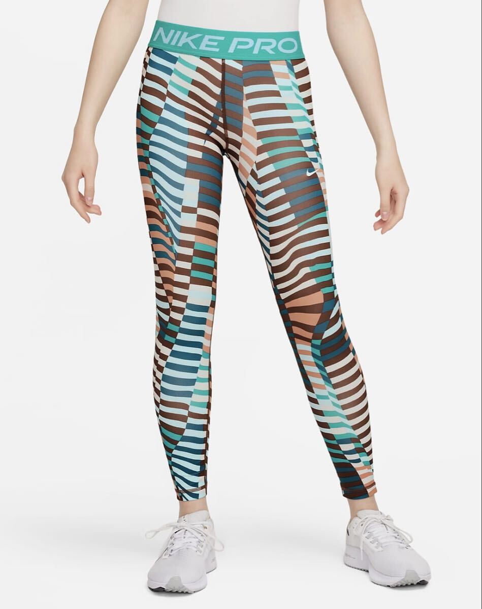 見えたと思ったら、さあ消えた!このナイキ プロ レギンスのプリントは、かくれんぼが上手になることを約束するものではありませんが、素晴らしい隠れ場所から次の場所へ走る時も、体の動きに合わせて伸縮します。